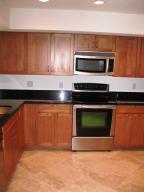 Completely updated end unit in well maintained and landscaped community . 1st floor completely redone in 20 inch porcelain tile on diagonal. Newer stainless steel kitchen appliances. Granite counters over solid wood kitchen cabinets with oversize corner cabinets and pantry. Kitchen updated with recessed lighting. Master bathroom recently updated with dual vanities and granite counters. Flat roof has 5 year warranty. Pitched roof new 2005. Community has reserved funds for new paver driveways and exterior paint. HOA provides cable plus HBO, landscaping, painting, building insurance and property management.