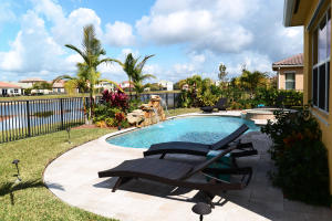 Spectacular 5/4 Waterfront Minto built home. Huge open spaces gourmet kitchen with 42 inch cabinets DBL Ovens stainless appliances glass backsplash breakfast bar Butlers pantry and more. Large formal dining room, open formal living room and spacious family room. Two guest bedrooms have their own private baths. Spacious master with dark hardwood floors and large walk in closets and a dream master bath. Home also features fenced back yard with custom salt system pool and real rock waterfall custom lighting with a Travertine deck and covered patio make this the perfect home for entertaining or family fun. Nothing was left out this home has over $65,000 in builder upgrades and is being offered below builder replacement cost. Don't miss this unique home in the heart of the western communities.