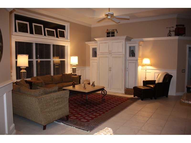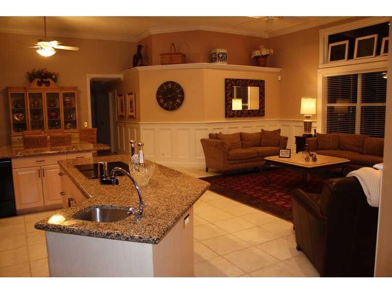 Spectacular lakefront & cul-de-sac estate home. Water views from every room. Over 260 feet of water & overlooks the amenity island of Meadow Run! Newer tile roof (2008), 2 newer a/c units, new impact glass windows & sliding doors & crown moldings! Beauti ful tile floors through out living areas. Chair rails & decorative moldings. Laminate floors in 2 bedrooms. Closet built-ins! Double wall ovens, granite counter tops, center island & vegetable sink! Wall unit in family room! Spacious master w/sitting area