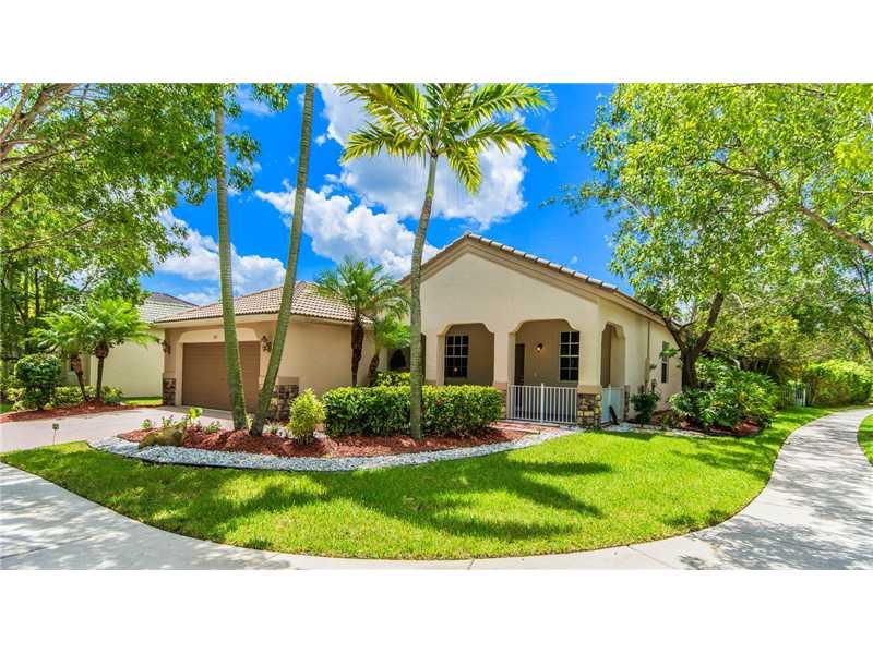 BACK ON MARKET!SHOWS LIKE MODEL! UPGRADED 4/2.5/2CG SINGLE STORY ON LARGE CORNER LOT IN GUARD-GATED WESTON! FRENCH DRS LEAD TO PVT COVERED BRICK PAVERED SCREEN PATIO W/LAP POOL & BIG RAISED SPA/DECK! STONE TILE ON DIAG W/NEW WOOD LAM FLRS IN LIV AREAS & B DRMS! 4TH BEDRM IS DEN W/FRENCH DRS. REMODELED MASTER BTH & KITCHEN W/CORION/42"WOOD CABS/CROWN MOLDING/STAINLESS APPL/SNACKBAR. GENEROUS BREAKFAST AREA. FRESHLY PAINTED/CALIF CLOSETS/HIGH BASEBOARDS/TOP OF LINE W/D! WORLD-CLASS CLUBHOUSE, A+ SCHOOLS!