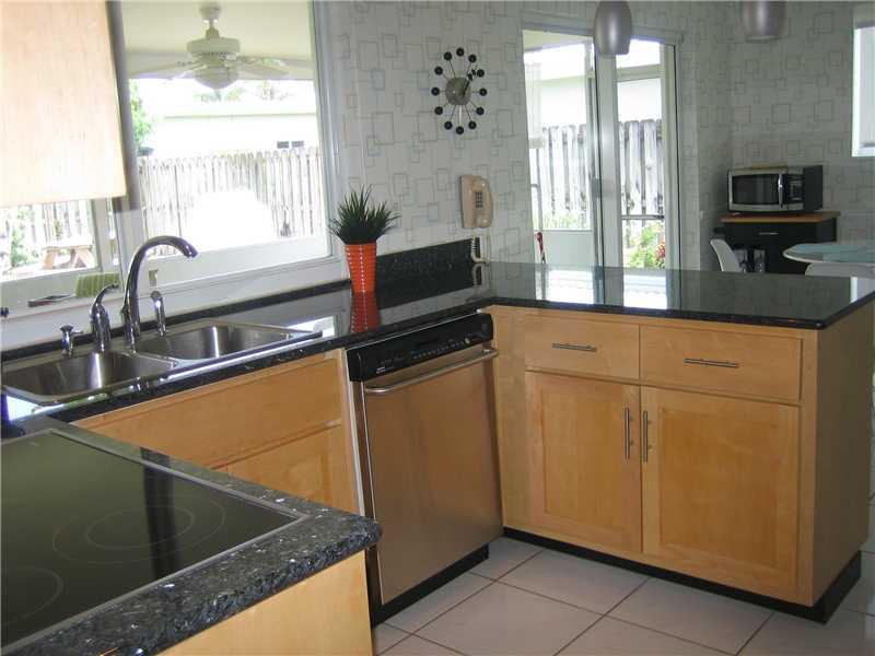 Quiet Imperial Point interior street - lovely 3 bedroom, 2 bath home with a large screened Flordia room for breezy outdoor living, and still room for a pool in the yard. Home has a relaxing front porch, the entryway opens into the living room and dining a rea with tile floors, plantation shutters. Renovated eat-in kitchen, impact windows and doors, including the garage door on the 2 car garage. Package A/C unit only 3 years old, upgraded electrical service and panel. Tile roof approximately 10 years old.