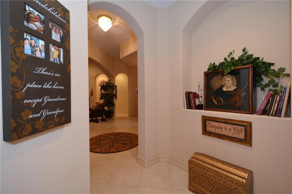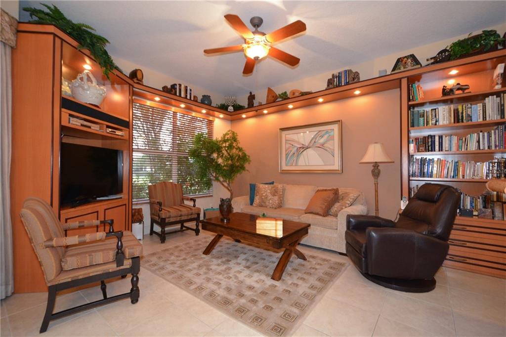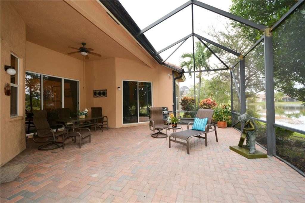 4 Bedroom, 3 Bath custom Gulfstream model with magnificent water views! This lovely one story home has tile throughout, updated open kitchen with breakfast area, formal dining room, custom built-ins in fourth bedroom being used as an office, and custom built-ins in family room. Over-sized, screened patio overlooking the lake. Gated community with clubhouse, heated community pool & spa, exercise room, teen room, tennis courts, basketball plus more amenities. A-rated schools.