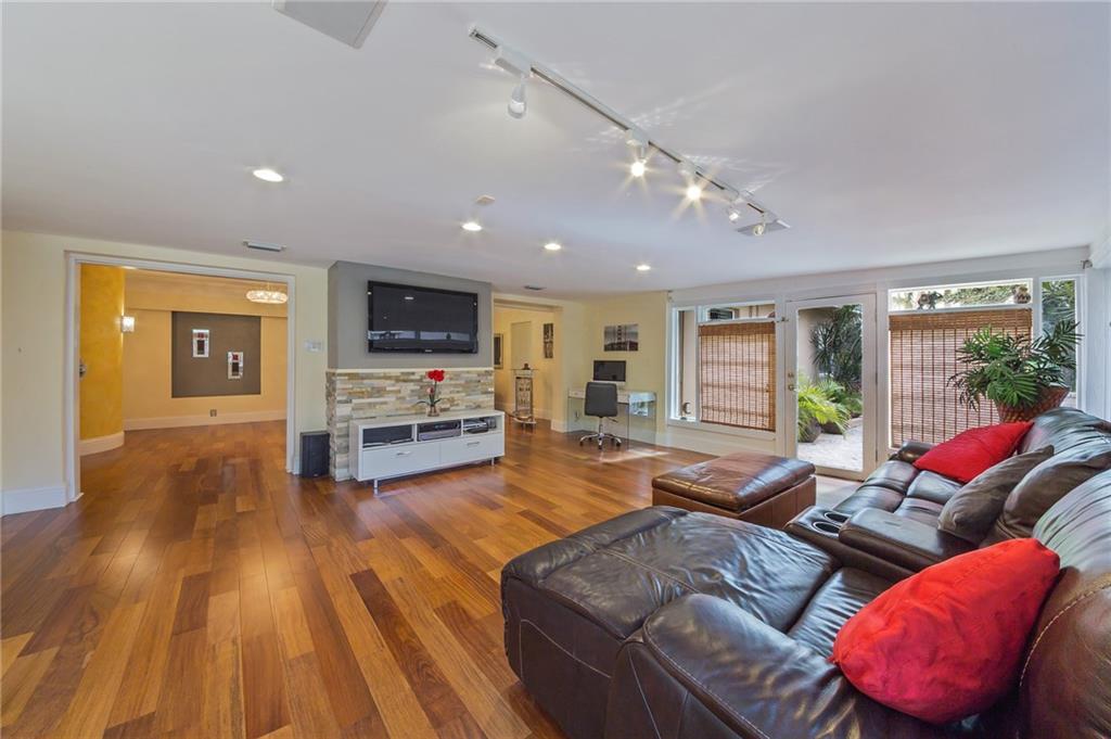Close to beach, well maintained 4/3 with in-law/guest suite incl kitchenette, bathroom & large closet. 2016 updates-Brazilian teak wood floor, stone fireplace, LED lighting, surround sound, granite kitchen table & interior repainted. Gourmet kosher-kitchen with granite counters, gas range & cooktop, open plan to spacious family room perfect for entertaining. Master suite with separate shower, corner bath & walk-in custom closet. Formal living & dining area. Landscaped double corner lot & circular drive.