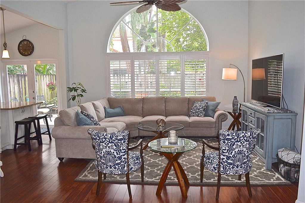 Gorgeous 3/2 located in desirable Embassy Lakes community. Model perfect inside and out! Nice open floor plan w/vaulted ceilings. Remodeled throughout...kitchen w/ granite counters, s/s appliances, wood cabinets, & large island. Beautiful wood-like flooring w/upgraded baseboards throughout. Remodeled baths. Large walk-in closet in master. Impact french door. Interior Plantation wood shutters. Beautifully landscaped lot w/fenced yard. Guard Gated community w/tons of amenities. A true family neighborhood!