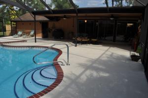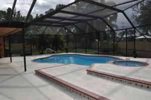 Very Nice Home on well manicured 1.25 Acre Corner Lot. Large Screened Pool with Large Fenced Yard. Paved Roads. This is a one of a kind unique home with a warm feeling. Guest Driveway as well as owners driveway off of side street of Orange Grove Blvd. This house has two Master Bedrooms, one upstairs and one down on the entry level.