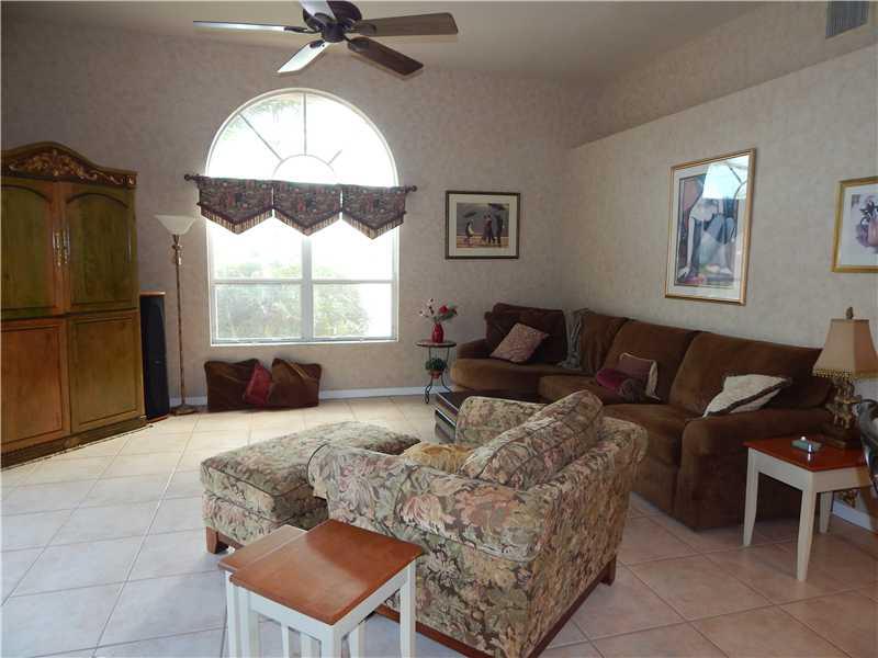 Come take a look at these amazing views ... in the gated community of Carriage Point. 4 bedroom + DEN / 3 bath triple split home and 3 car garage, with a very lush tropical pool area overlooking the lake. Spacious open floor plan features wood cabinets, g ranite, extended family room, child pool fence, hurricane shutters. Come see and enjoy Florida Living!!
