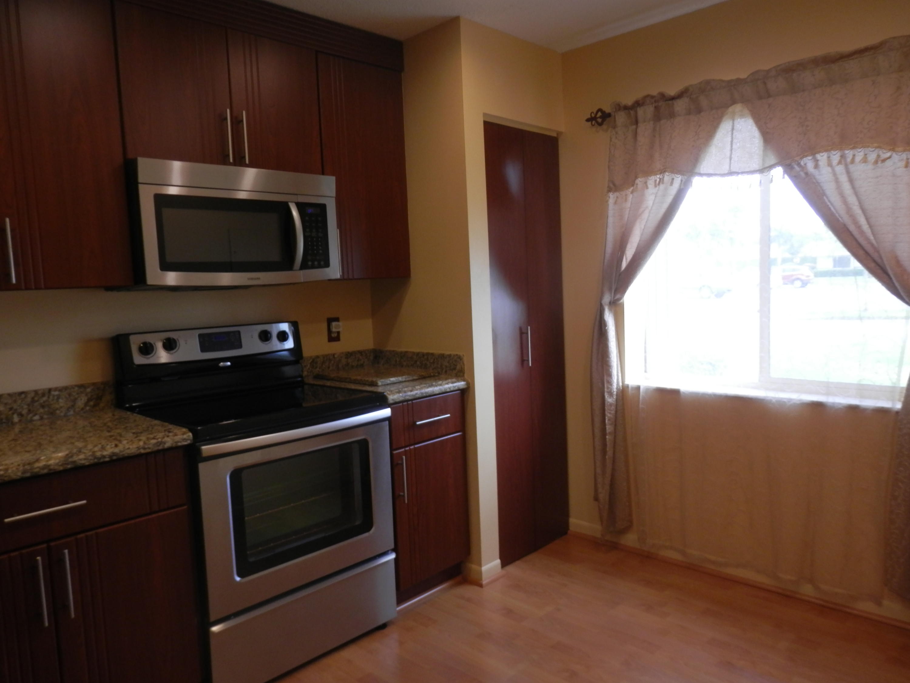 Two bedroom two and a half bath townhome - New air conditioner & new kitchen - cabinets are new and not re-faced. Two bedrooms each have private full baths upstairs - full size washer and dryer upstairs - half bath downstairs - extra shelves in closets, back porch and under stairs - Beautiful kitchen is laminate and pristine - Under kitchen sink has lighting - stairs to upstairs are laminate - upstairs is carpeting - Accordion shutters are at all windows - patio out back to enjoy Florida living -