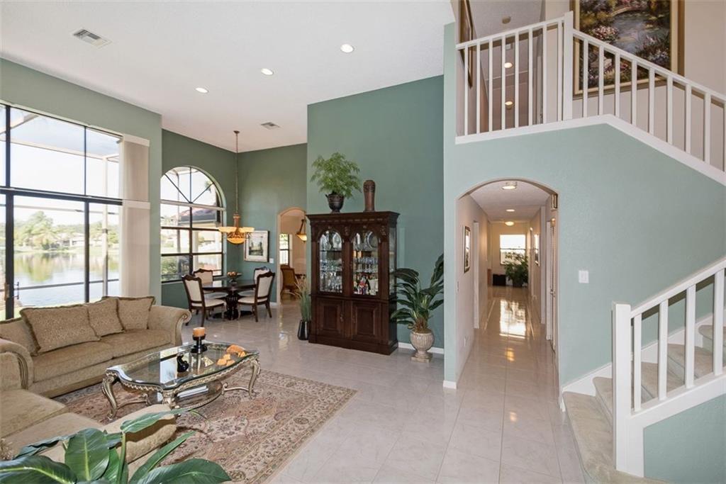 Watch the most amazing Sunrise & Sunsets. Spectacular lake lot! Magnificent & beautiful home is impeccably maintained. Roof 10/06. Home Boasts natural light, bright & open concept with soaring ceilings, beautiful lush landscaping with lighting. Luxurious master suite as well as 2nd bedroom & full 2nd bath on lower level. 3rd & 4th bedrm & 3rd full bath on private upper level. Livingrm, diningrm, familyrm, master suite all have views of tranquil lake. Huge screened tiled back patio. Attached feature sheet.