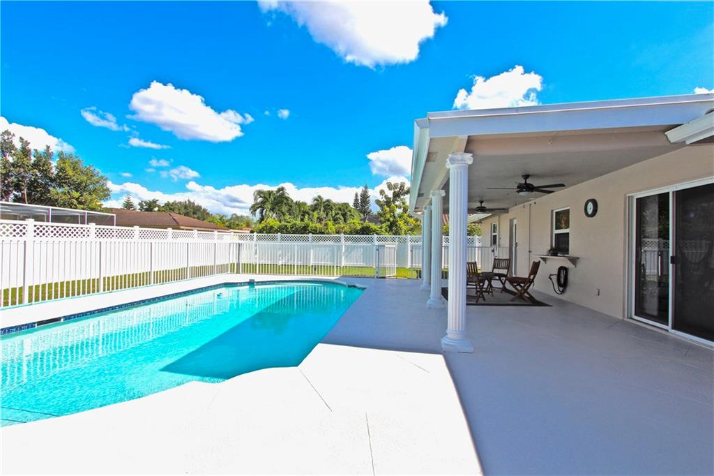 Completely updated with pool, travertine floors, and bamboo wood flooring in bedrooms, Brand new paint exterior with new 6”seamless gutters, Brand new interior paint & knockdown ceilings, Smart house technology, LED High hats throughout, Hurricane Impact Windows, Brand new Hurricane impact garage door, White PVC Fenced yard, 2 yr newer A/C motor inside & outside units, master bath remodeled w/spa steam shower, kitchen remodeled w/quartz counters, SS Appl & Wood Cabinets, Gas Stove. Front load W&D. NO HOA