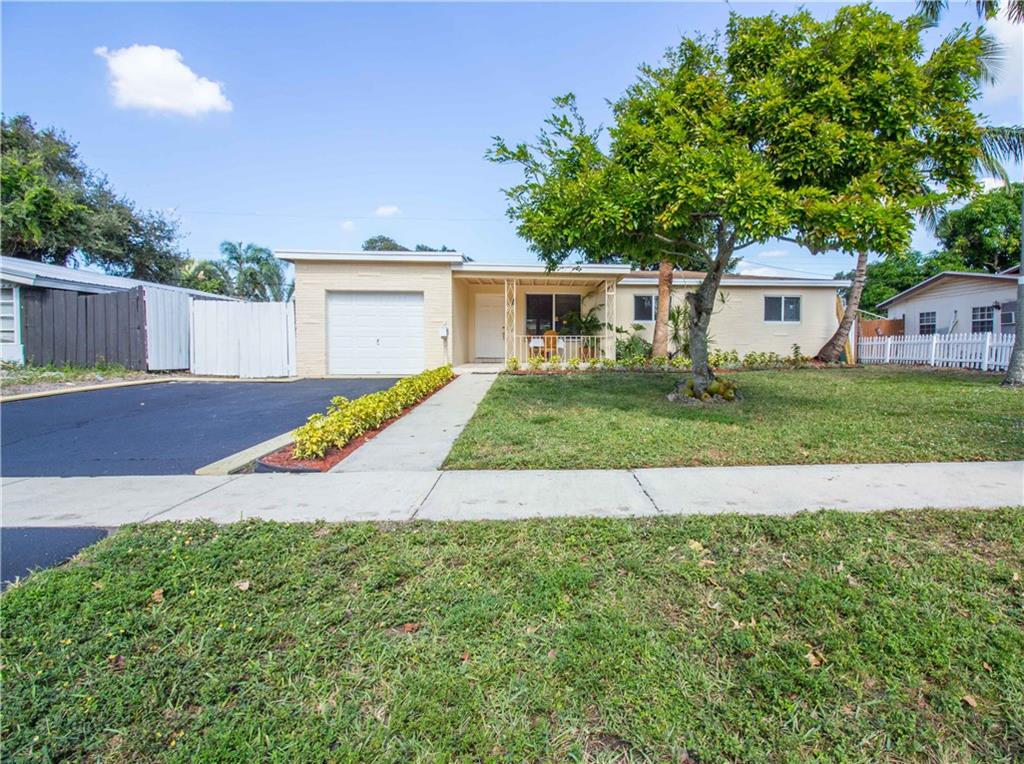 Tired of homes that need to much work? Charming home with many improvements including updated kitchen cabinets and countertops, appliances, renovated bathrooms with newer tile and fixtures, flooring, hurricane impact windows and newer roof. Many more amenities including wood decking, garage and fenced yard. Rare front porch. Popular neighborhood just minutes to beaches, downtown FL, airport and major highways. No home owners assoc. Boating community with yacht/social club and drop boat to ocean access