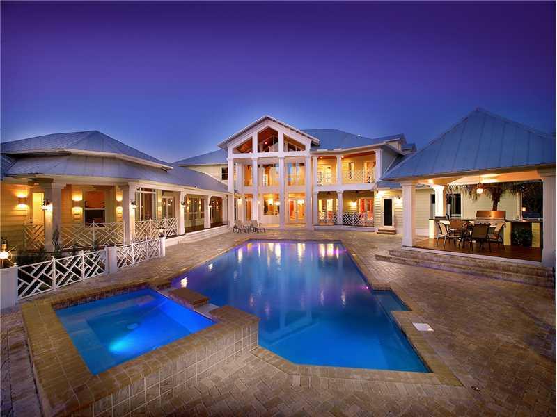 2011 Newly constructed.10,000sqft of soaring beamed ceilings & 2story glass walls, that allow private gardens, pool/lake views to dominate this home. 8brm/8bths 2half baths addl. rooms include 12-15 person theater, office/billiard/playroom. Master has lof t sitting room, his/her baths, steam shower, private balcony. Kitchen has Viking fridge. Wolf dual gas stove. Marble floors, inside and out. Outdoor covered 2nd kitchen/picnic area. Impact glass, covered lanais, elevator, fireplace. True Florida Living.