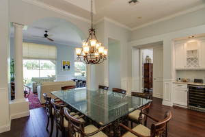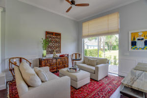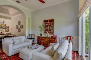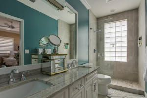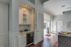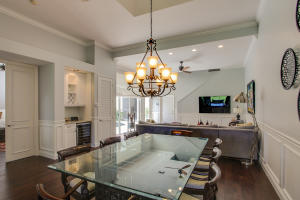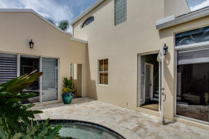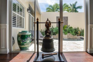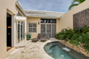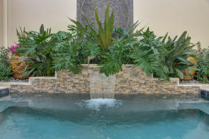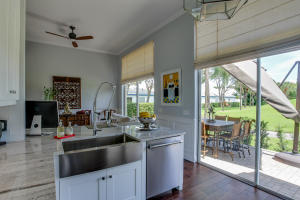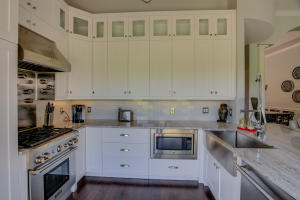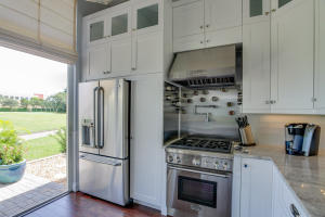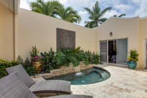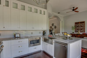 This tasteful & totally renovated townhome has a fabulous floorplan with three ensuite bedrooms and baths and a guest powder room that center on the peaceful zen courtyard pool with a stacked stone waterfall, new travertine pavers and lush landscaping. The main house is light and airy with lofty ceilings, warm contemporary tones and a sweeping golf course vista. Updates include all new white custom kitchen cabinetry with lighted glass display doors on top. Top of the line appliances include a stainless Thermador gas stove and hood with Pot Faucet, GE Monogram Stainless French Door Refrigerator, Thermador dishwasher and microwave, Stainless apron sink with industrial faucet, and "River White" granite counters. The new Country Estate Hickory hardwood floors in Dark Leather
