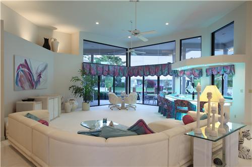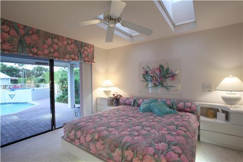 Light bright single story deepwater home with volume ceilings & four bedroom suites. Formal dining room, study / office, split bedroom plan, breakfast nook and water views from all main living areas. Generous covered outdoor living areas overlook Bay Colo ny estates. 100' of deepwater dockage. Hurricane protection.