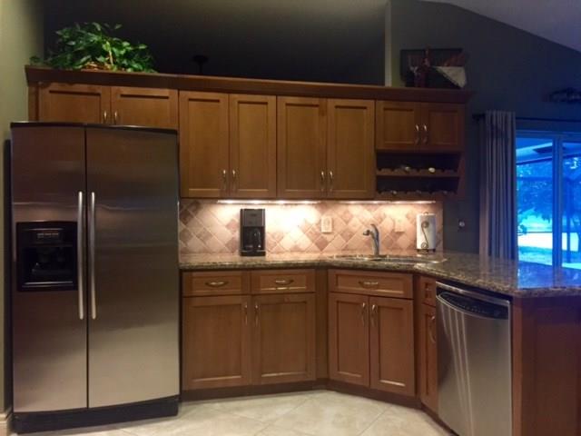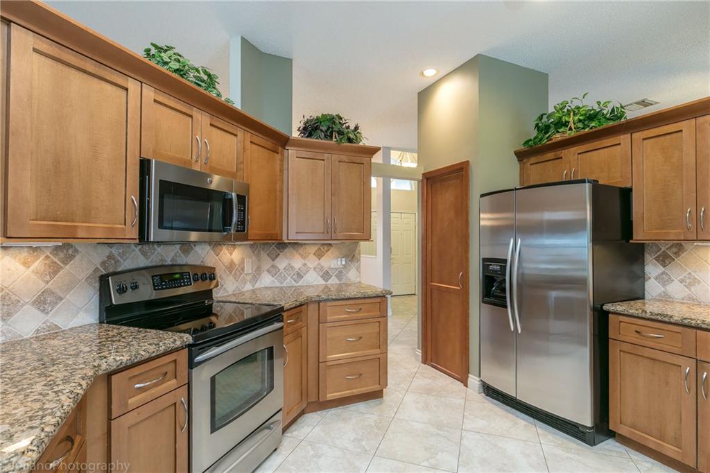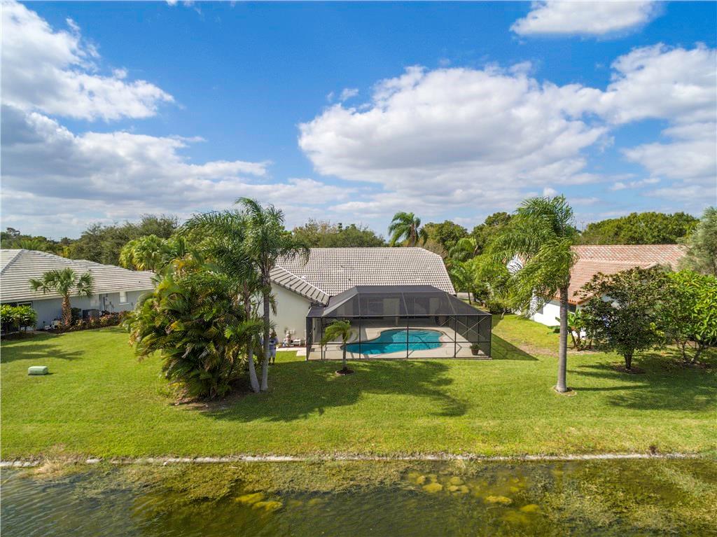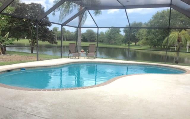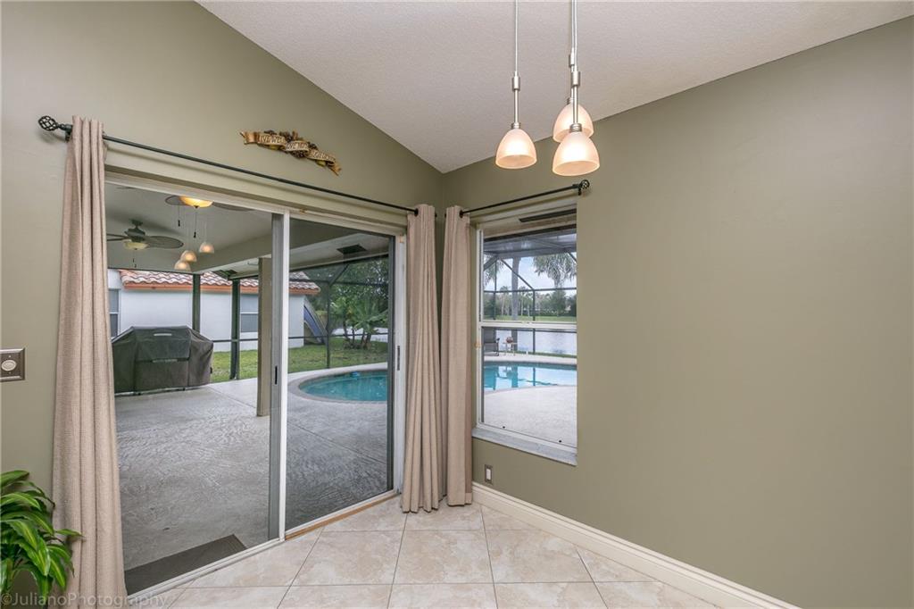 SIT BACK & ENJOY TRANQUIL WATER VIEWS & AMAZING SUNRISES FROM YOUR SCREENED IN POOL & PATIO! This move in ready waterfront pool home features 4 BR / 2 full BA, remodeled kitchen w/ granite counter tops, tumble marble back splash, wood cabinets, stainless steel appliances, breakfast area/bar stool seating, family room, living room & a formal dining room. Open & bright, w/ a split bedroom plan, there is porcelain tile throughout living areas & wood laminate flooring in bedrooms. This one is ready to go!