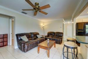 Open, bright and spacious 3 bedroom 2 bath pool home on huge fully fenced lot. Kitchen opens to family room and dining area. Huge living room or great room. Large master bedroom with walk-in closet. Tile throughout main living area; quality laminate in master bedroom and carpet in other bedrooms. Dining area and family room have sliding door walk-out to covered porch, huge patio; 30'x15' pool and massive .34 acre fenced yard. Roof 2008; AC 2012; Water heater 2015. Quiet neighborhood. No HOA. Great location with easy access to schools; shopping; beaches and highways.