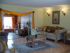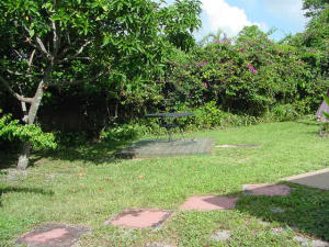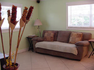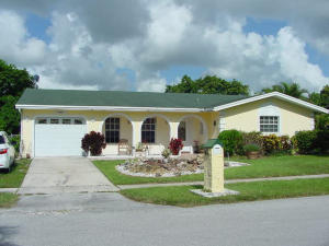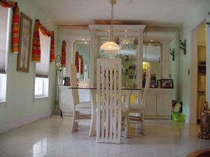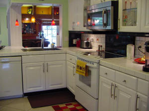 Nestled on a private lot, a leaded glass door opens into this one-story home offering 3 bedrooms, 2 baths & a one-car garage is open & light and immaculately maintained featuring neutral 20' beige tile laid on the diagonal & blonde hardwood floors; a remodeled kitchen with white 42' cabinets, tile countertops, white appliances & a stainless steel refrigerator; a charming sunken living room; Built-in credenzas in the Dining & Family Rooms; a bonus entertaining room with a built-in bar & stone tile floors which was previously a patio; remodeled bathrooms; crown moldings & a replace roof. French doors lead out to a spacious fenced back yard with a patio, grass, shed & mango & avocado trees.