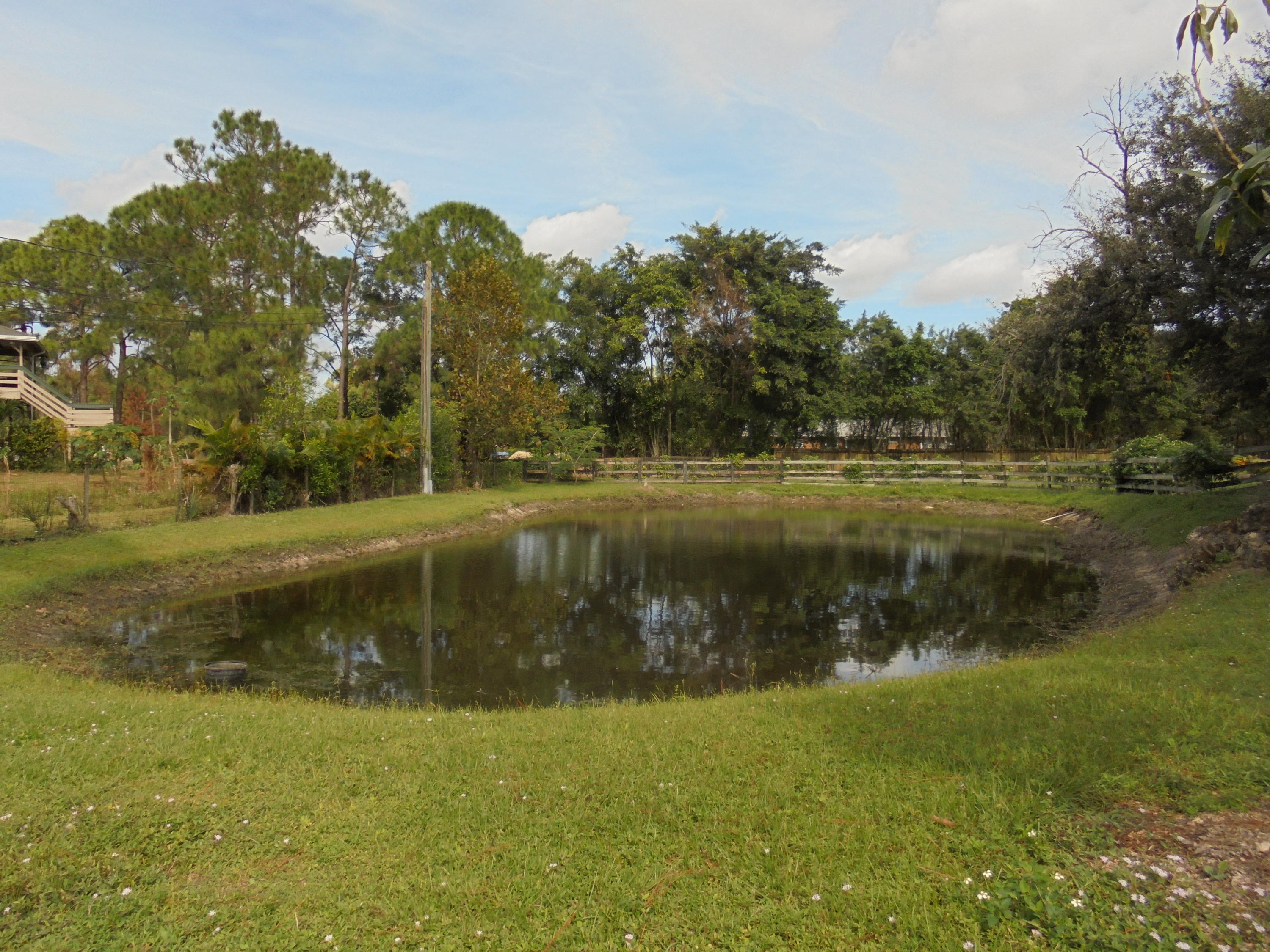 Cozy country home with enormous charm in the Acreage; Needs TLC, but great potential with large 1.5 acre lot; Yard is fully fenced with horse stalls with separate water and electric; Private stocked pond , large fire pit, many fruit trees, plus much more... Large area for additional barn or garage in rear of property. Home has tankless hot water heater and new A/C...A must see...
