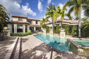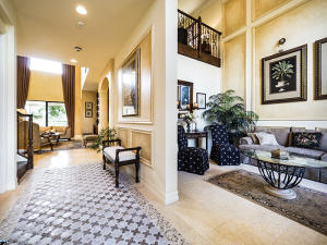 Upgrades, upgrades, upgrades in this former builder's model! Move right into this exceptional 4BR/4.5BA+Den+Loft located a pristine lot w/ preserve views. The custom features and designer touches in this home are what you might expect at the million-dollar price point. Jerusalem stone floors, gourmet kitchen with butler's pantry, custom moldings/designer treatments throughout. Den offers a custom built-in unit. Updated entertainment center in family room, as well as surround sound. Impact glass front doors and total hurricane protection. Patio offers phantom screens overlooking the custom saltwater pool & spa w/ elegant fountains and waterfalls, all controlled by remote. Epoxy garage floor. Two 2013 A/C units, LED landscaping lighting front/back. Also available furnished.
