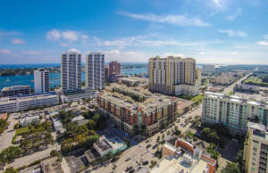 WOW! Location, location, location, in the heart of West Palm Beach (City Place). This amazing 3 story, 2/2.5 2 car garage townhome offers an abundance of open space with your very own private gated entrance. Beautiful marble flooring through-out the living areas. Generous size living room with high vaulted ceilings. Kitchen has upgraded wood cabinets with granite countertops. French doors opens into the master suite with walk-in closet. Master bathroom has roman tub, dual sink with granite countertop vanity. Both guest bedrooms have beautiful laminate flooring with double closet space. Great city view and within walking distance to shopping boutiques, fine dining and entertainment right outside your door. European Lifestyle at it's best.