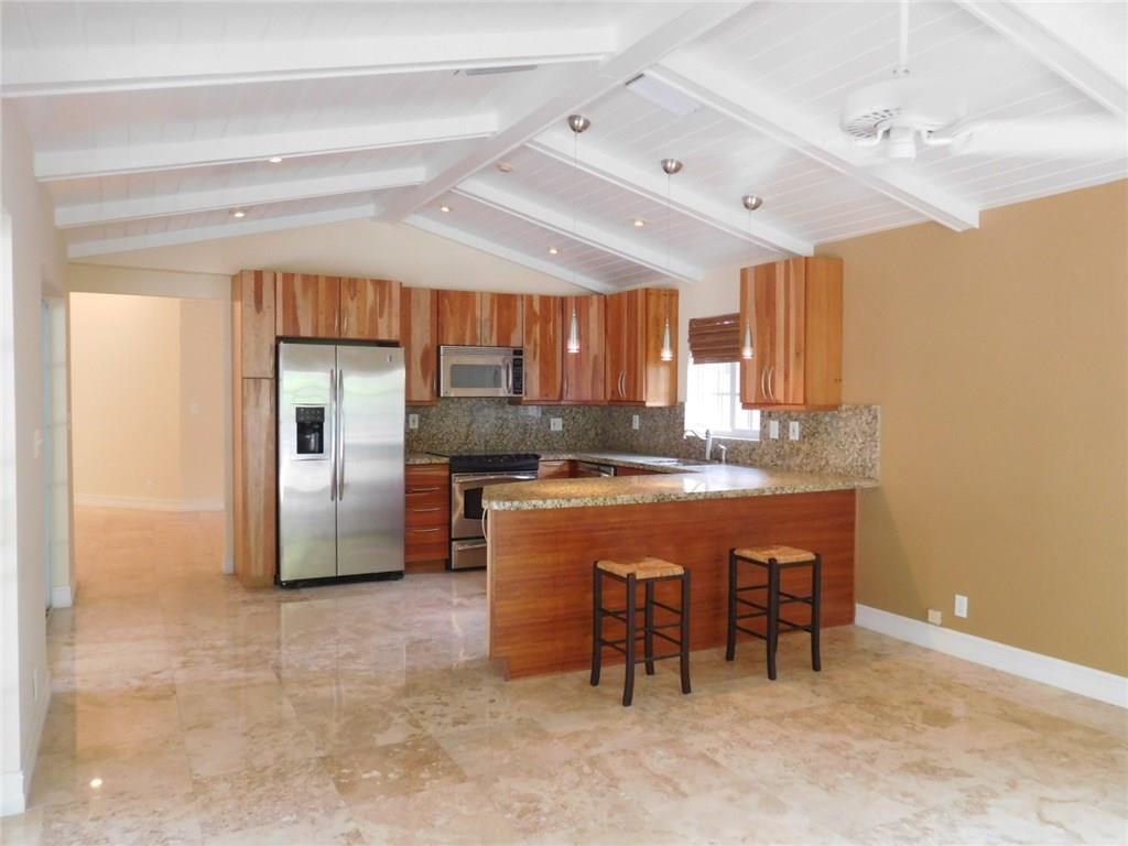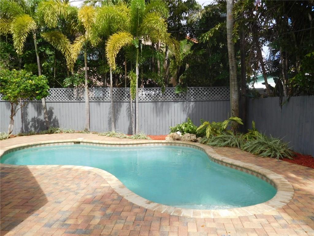 Live in beautiful & desirable Rio Vista Isles! TOTALLY REMODELED home has 3 Bedrooms/2 baths, free-form pool, spacious pavered brick back patio & large covered overhang for entertaining. Vaulted ceiling in family rm/kitchen, impact windows/doors & fenced back yard. Interior just painted, new landscaping, fence painted, marble floor polished, roof pressure cleaned. Quiet street does not go thru to Federal Hwy & is walking distance to a great family neighborhood park. Close to beach, airport & Las Olas!