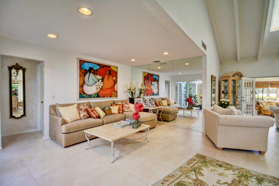 Open, bright and charming 2 bedroom plus den (could be 3rd bdrm/wall was taken down)villa in Horizons section of Boca Lago...an all age, pet friendly (1 pet up to 30 lbs.) section. Home features large 18 inch tiles in extended living area, extra large and enclosed air conditioned Florida room overlooking magnificent lake and golf views, newer a/c and hot water heater, newer refrigerator, beautiful open atrium and new bathroom vanities. Can walk across the street to community clubhouse with heated community pool. Country Club membership available but not mandatory.