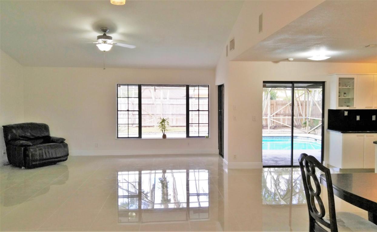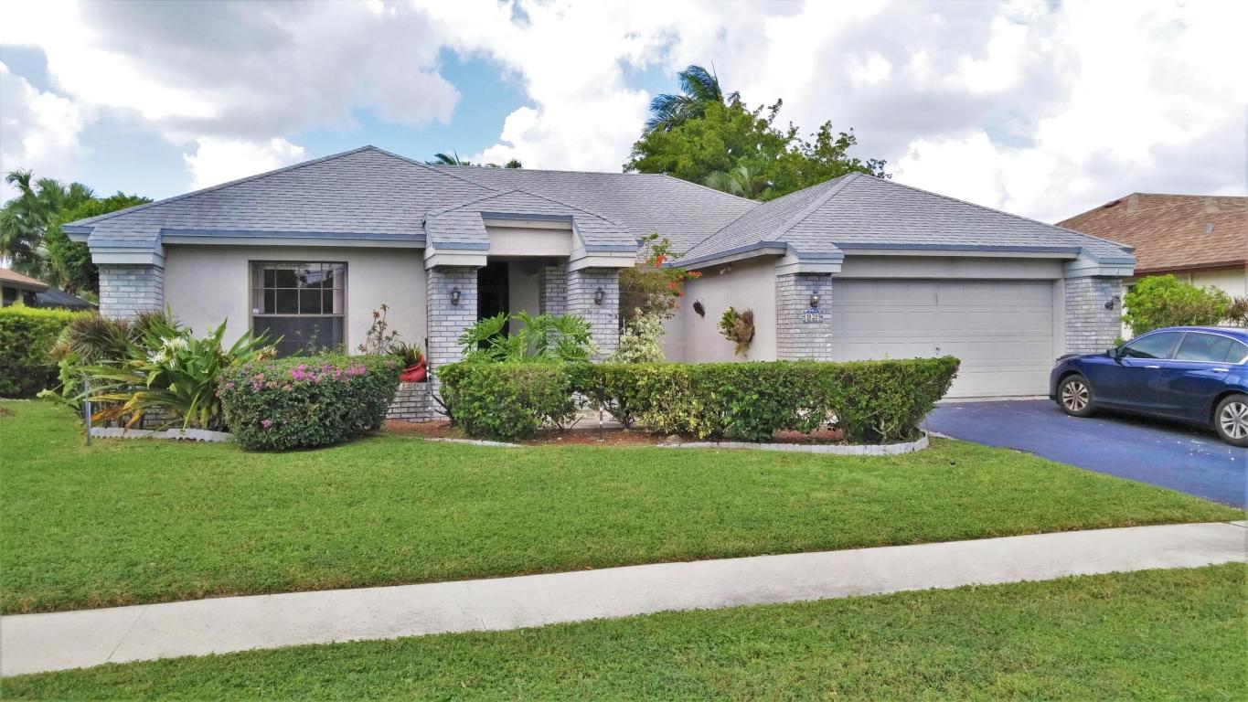 Don't miss this bright, open, spacious home with 4 bedrooms, large screen enclosed private pool, new porcelain flooring, updated kitchen with granite counters, renovated master bath with frameless glass shower, expansive living area, vaulted ceilings, covered patio, custom entry door, new paint, recessed lighting, updated fixtures, and more. Zoned for nearby highly rated Boca Raton schools! Low HOA! Pet friendly! No carpet! Quality plaza offering shopping and dining within walking distance.