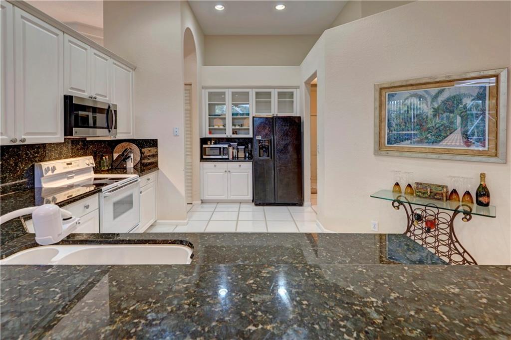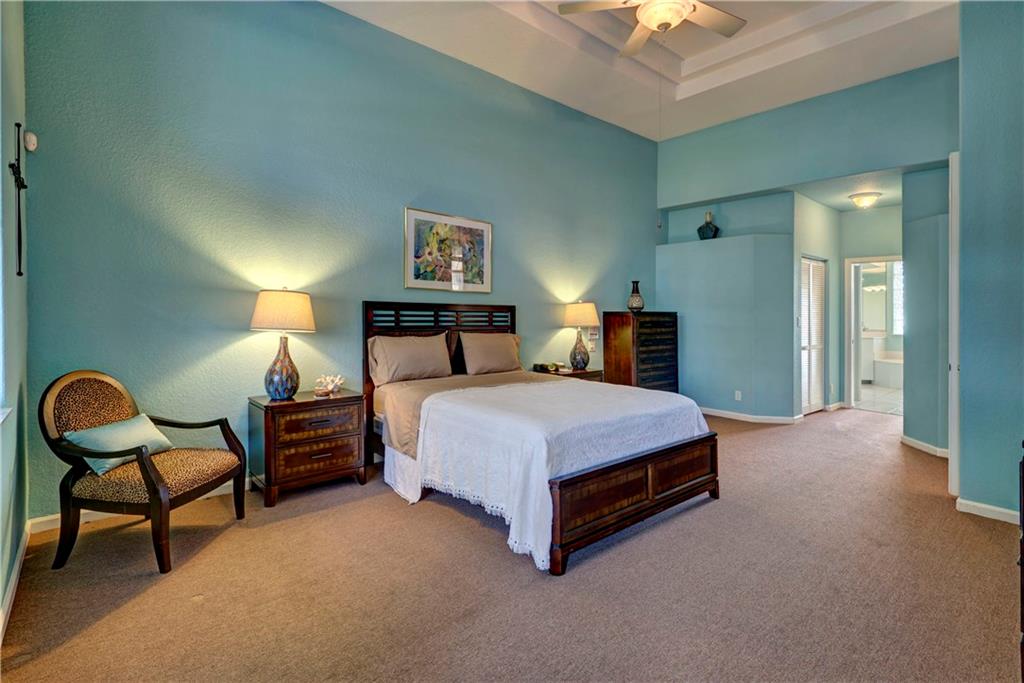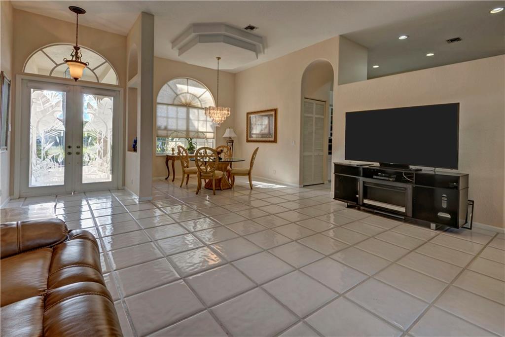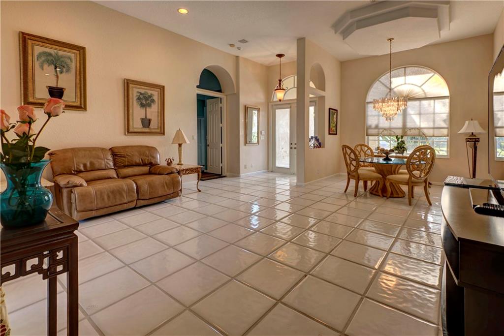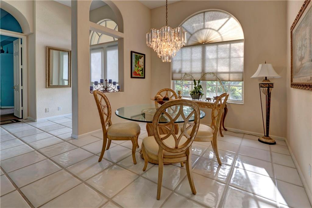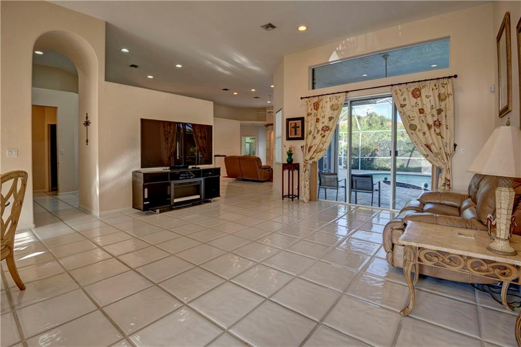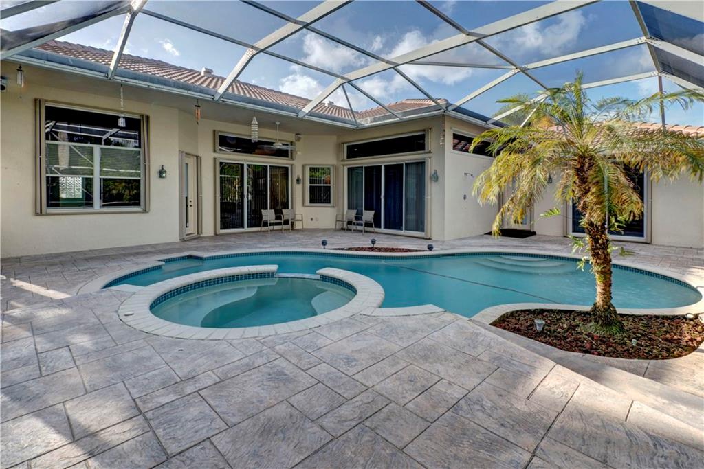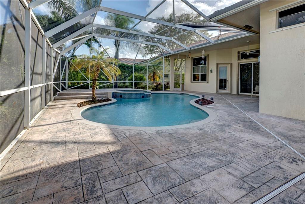 This lovely home features an open layout with tiered trey ceilings. Architectural columns give your breakfast nook a cozy feel. The kitchen features all wood cabinets with granite counters. Master suite features walk in closets and jetted tub. The sparkling screened in heated pool with Jacuzzi has a gentle salt conditioning system and outdoor shower. Awesome pool patio area, great for entertaining! Even a doggy door leading to the fenced yard for your fur babies convenience. Newer S tile roof and A/C.