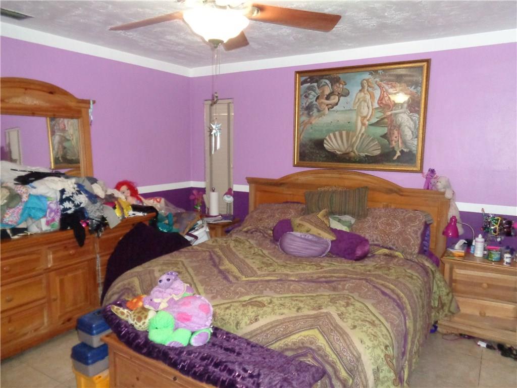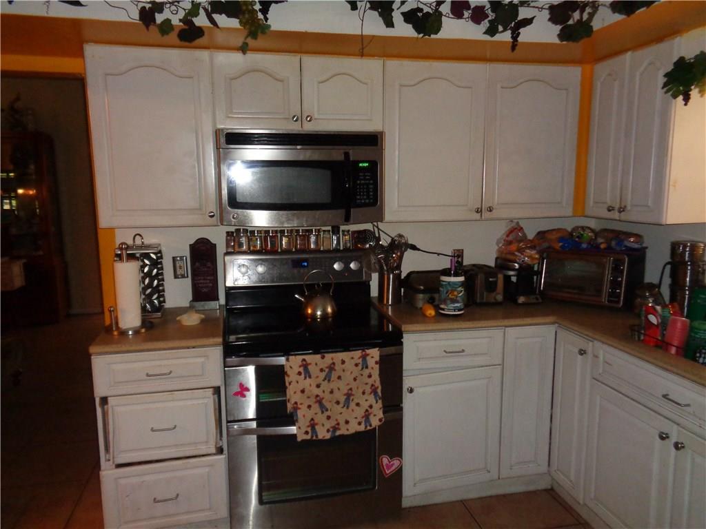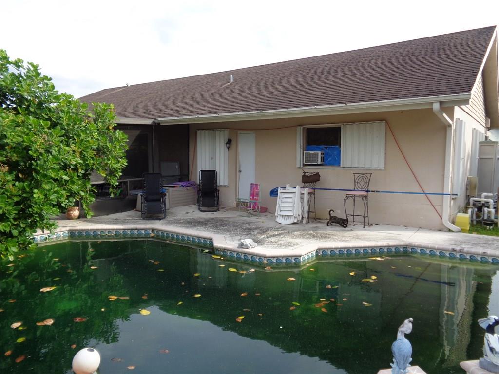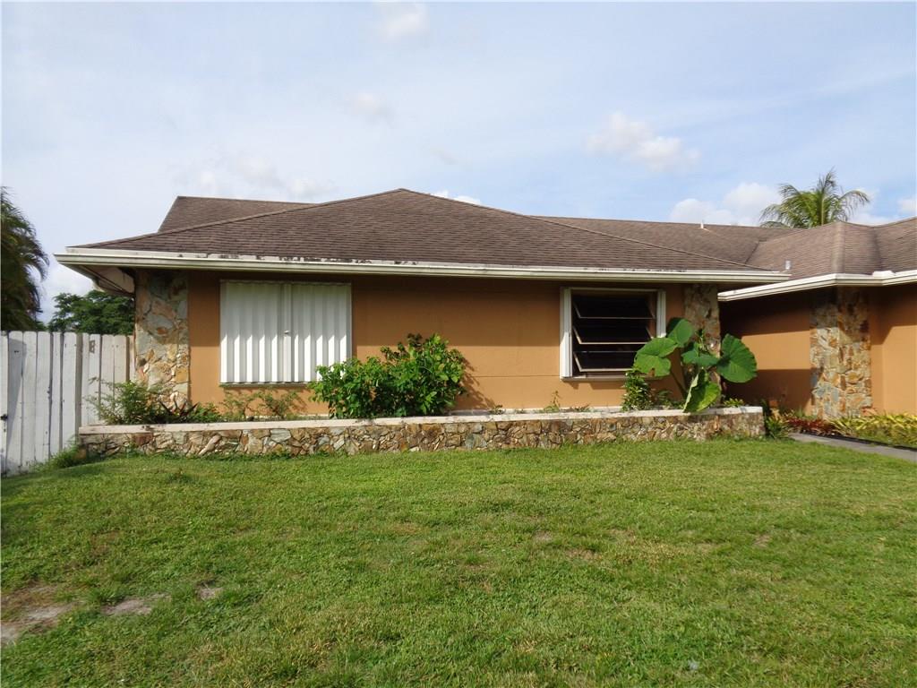 Very large DOUBLE LOT waterfront property! See folio numbers. Full 4 bedroom 2 bathroom with vaulted ceilings. Large living areas, kitchen with breakfast area! Formal Dining room! Accordion shutters! Covered patio overlooking pool and back yard. Fence for 1/2 of the property. Land goes all the way back to the canal (TWO LOTS). Stacked bedroom plan. Entire home opens up to the back yard and pool area. NEEDS WORK! AS IS. Call listing agent with any questions.
