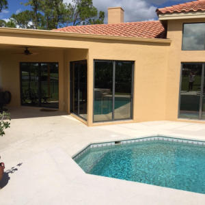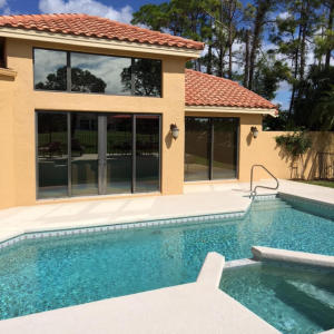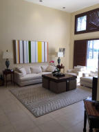 Spectacular 1 Acre lot with breathtaking water and golf views from this light and bright Southern rear exposure. This beautiful 3 bedroom, den, 3 1/2 bath home includes both a formal living room and family room, with formal and casual dining areas. Split bedrooms gives great privacy. Updates and upgrades throughout. Full hurricane impact glass doors and windows for full insurance discount. Newer roof, A/C units, water heater, washer and dryer,microwave, wall ovens, kitchen sink and faucet and more. Well water system in place for lawn care, public water for house. Master bath, 1/2 bath and one guest bath has been updated. Extras include California closets, high hat lighting, plantation shutters, hardwood floors in master bedroom, fenced rear yard and more.