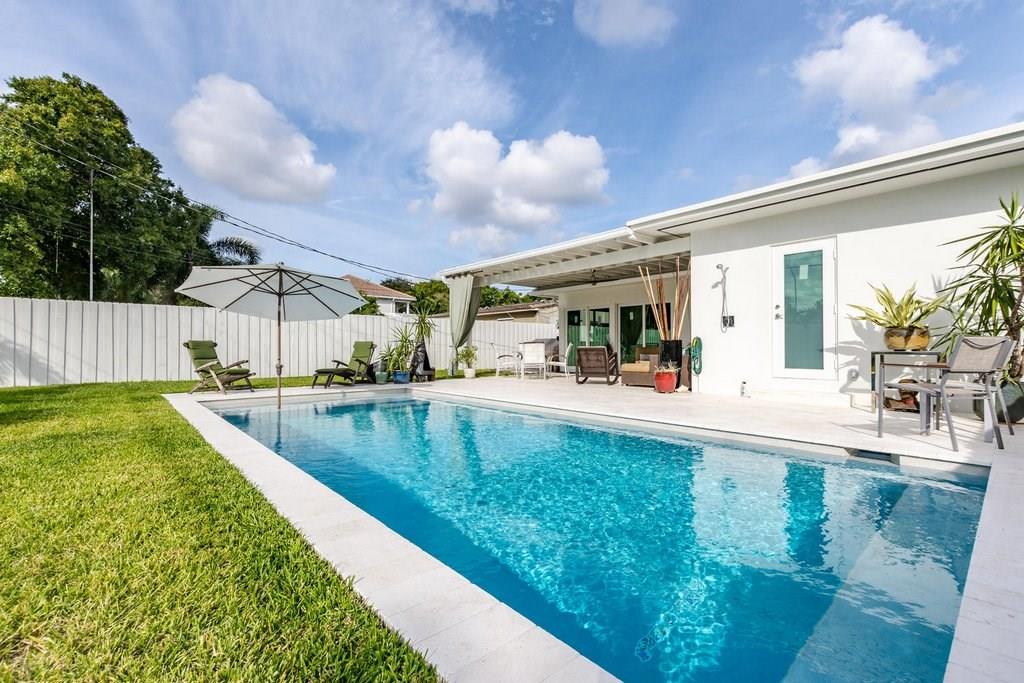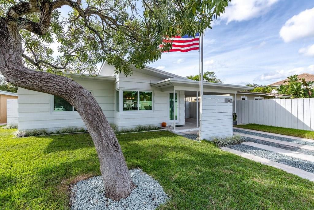 IMPRESSIVE MID CENTURY MODERN GEM! ATTENTION TO DETAIL ABOUNDS IN THIS COMPLETELY RENOVATED HOME...LET'S START WITH ALL NEW, KITCHEN, HURRICANE IMPACT WINDOWS AND DOORS, BATHS, ELECTRICAL, LIGHTING, BRAND NEW SALT WATER POOL AND TRAVERTINE DECKING...ALMOST TOO MUCH TO LIST..VAULTED CEILING WITH EXPOSED NEW A/C DUCTWORK, RESTORED TERRAZZO FLOORS!!! SHARP 40' EBONY CABINETS TOPPED WITH WHITE QUARTZ COUNTER TOPS, GLASS BACKSPLASH, AND UNDER CABINET LIGHTING...THE MASTER BATH WILL SELL THE HOUSE ALONE! WOW!!