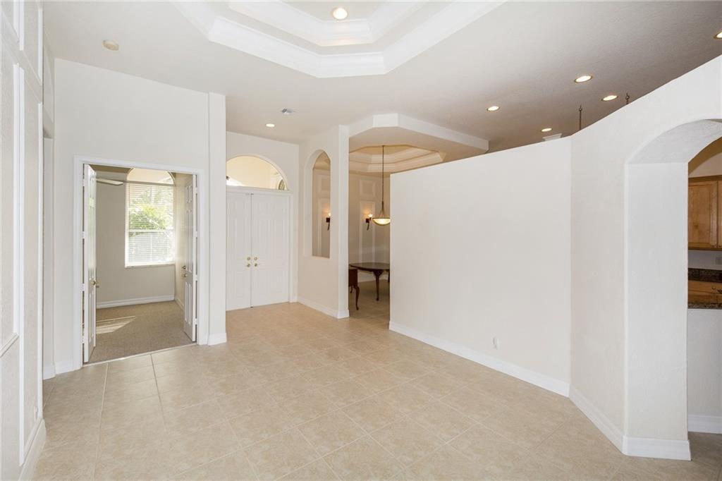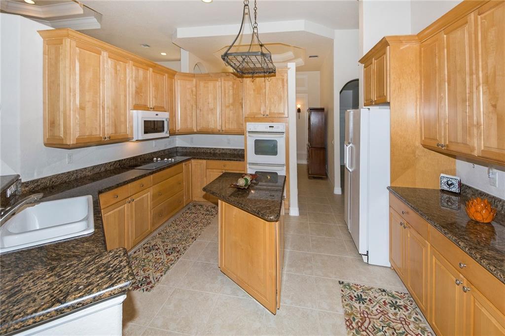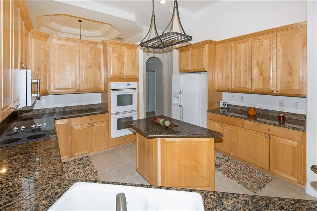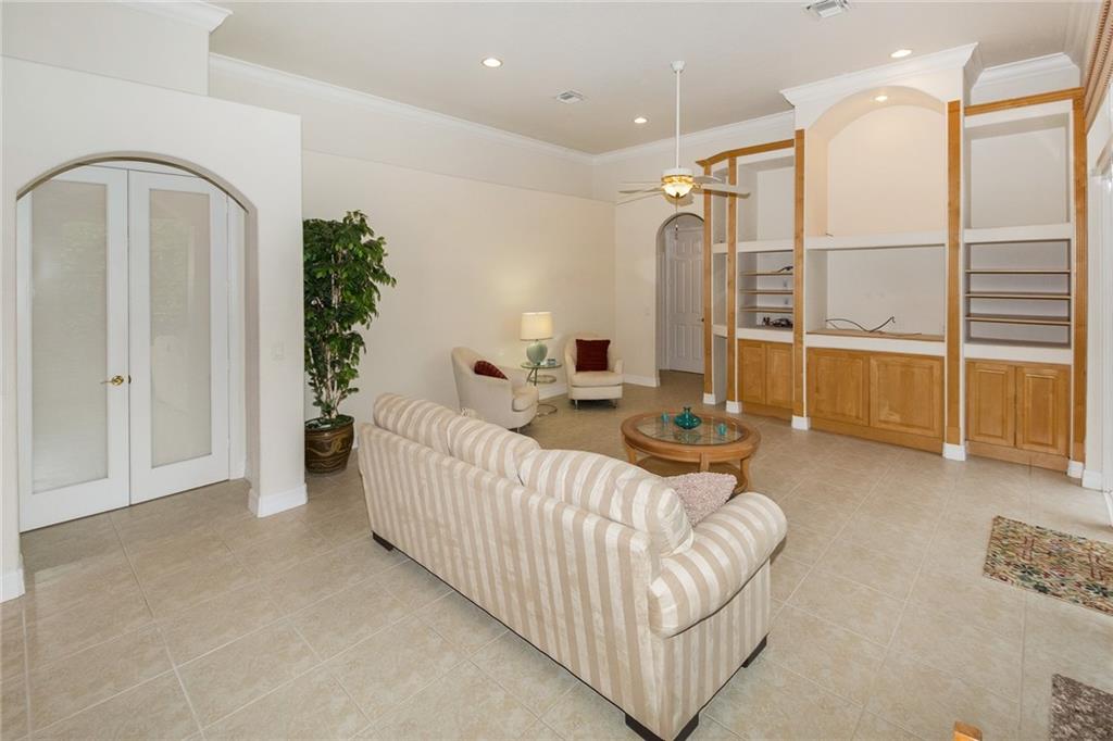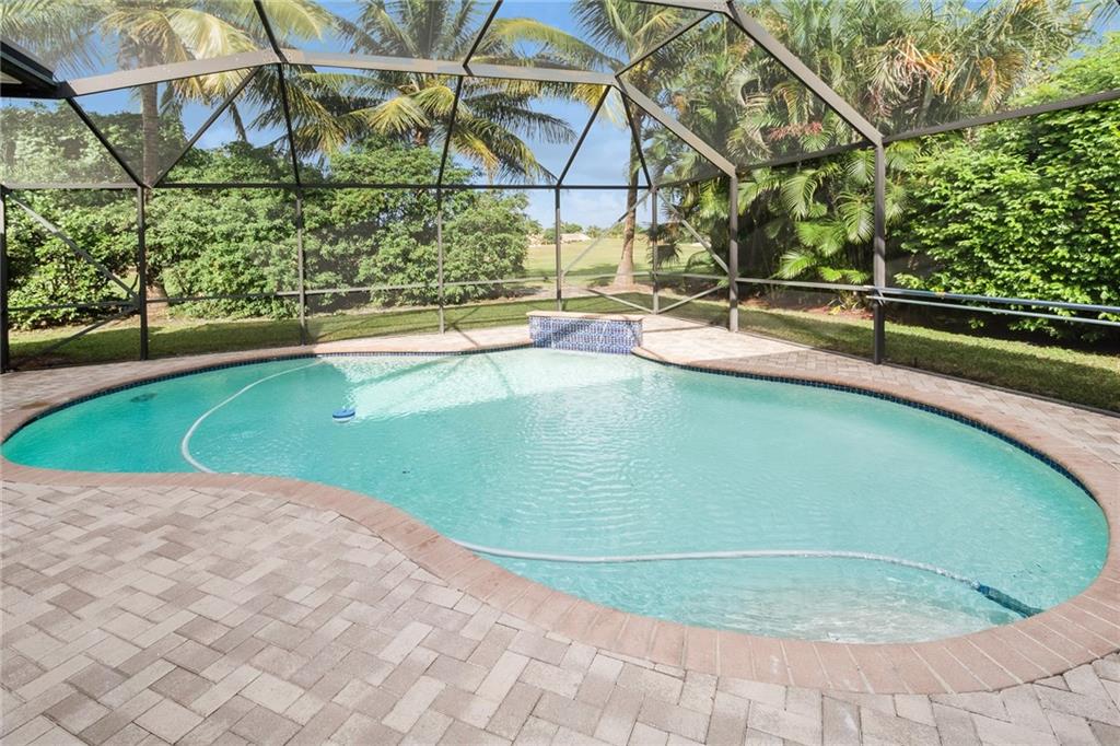 From the moment you enter, you are greeted with soaring ceilings, crown molding and lots of natural sunlight. This 5 bedroom + office, 4 bath home features a triple split plan that offers privacy for everyone in the house. Built in 2002, it has knockdown ceilings and curved walls. Open and spacious floor plan w/huge family room, open to the kitchen w/seamless window overlooking lovely screened pool & golf course. Huge brick paver driveway w/3 car garage. What more could you ask for at this price point!