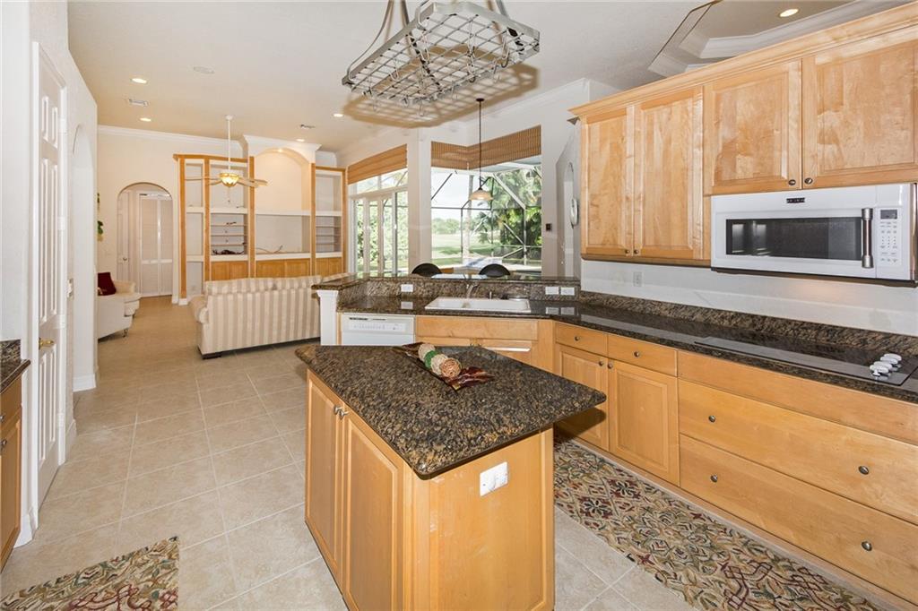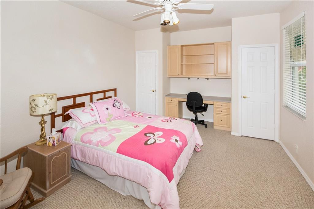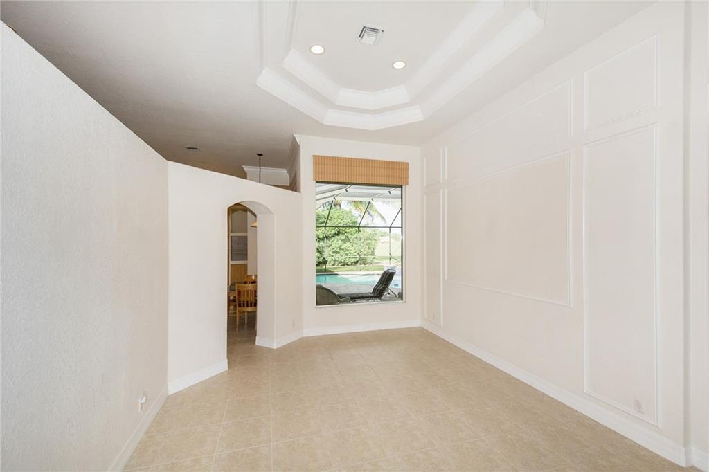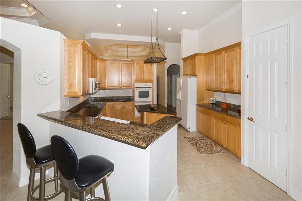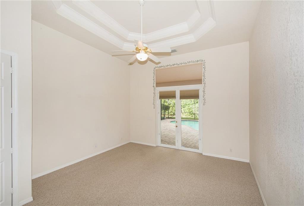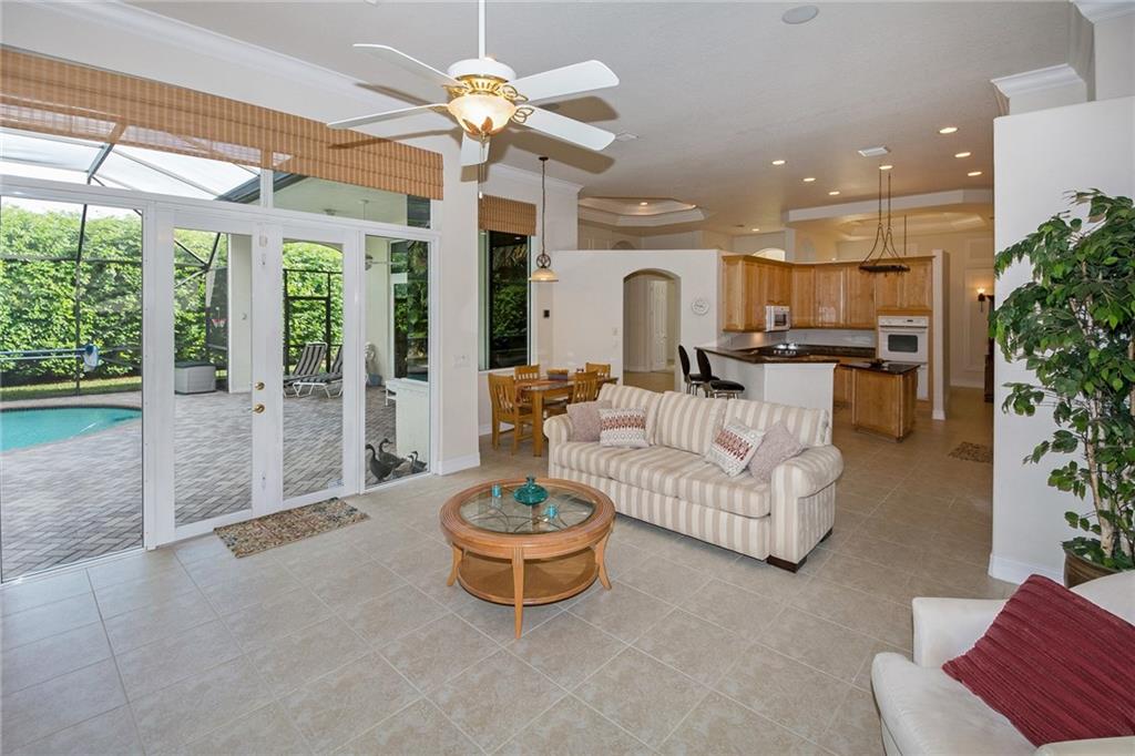 From the moment you enter, you are greeted with soaring ceilings, crown molding and lots of natural sunlight. This 5 bedroom + office, 4 bath home features a triple split plan that offers privacy for everyone in the house. Built in 2002, it has knockdown ceilings and curved walls. Open and spacious floor plan w/huge family room, open to the kitchen w/seamless window overlooking lovely screened pool & golf course. Huge brick paver driveway w/3 car garage. What more could you ask for at this price point!