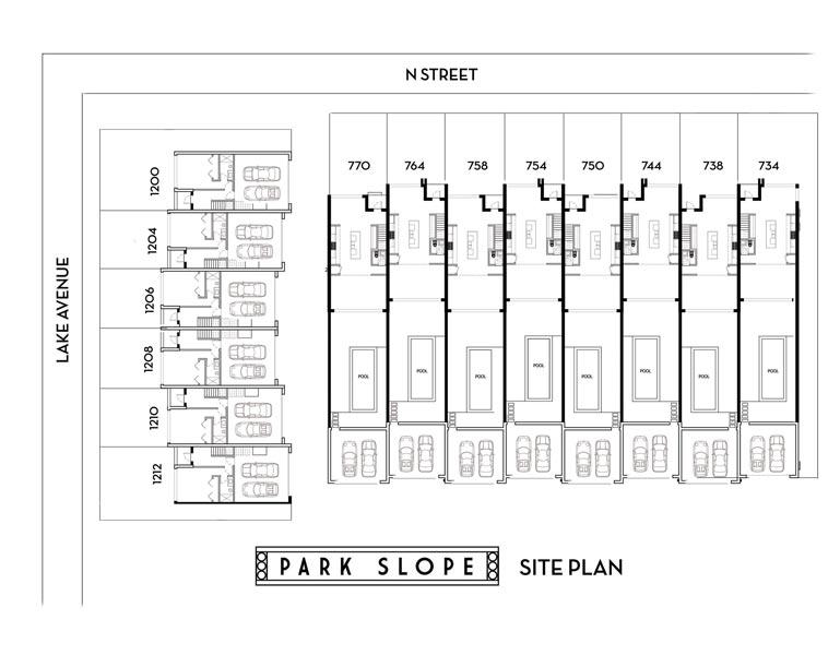 Park Slope is Downtown West Palm Beach's newest and hottest address. Nestled in the hip and historic Grandview Heights neighborhood, 14 brand new construction boutique homes, designed in the classic Art Deco style by Silberstein Architecture and developed by successful long time local urban developer, Parkland Development, Park Slope offers the best of all worlds. All homes have private front courtyard entrance and Slopeside models have large walled-in private back yards with private pool options. Living areas have large porcelain tile flooring in bright modern white or matte grey finish. All homes have 3 large bedrooms with large walk in closets, and finished in dark espresso hardwood flooring.