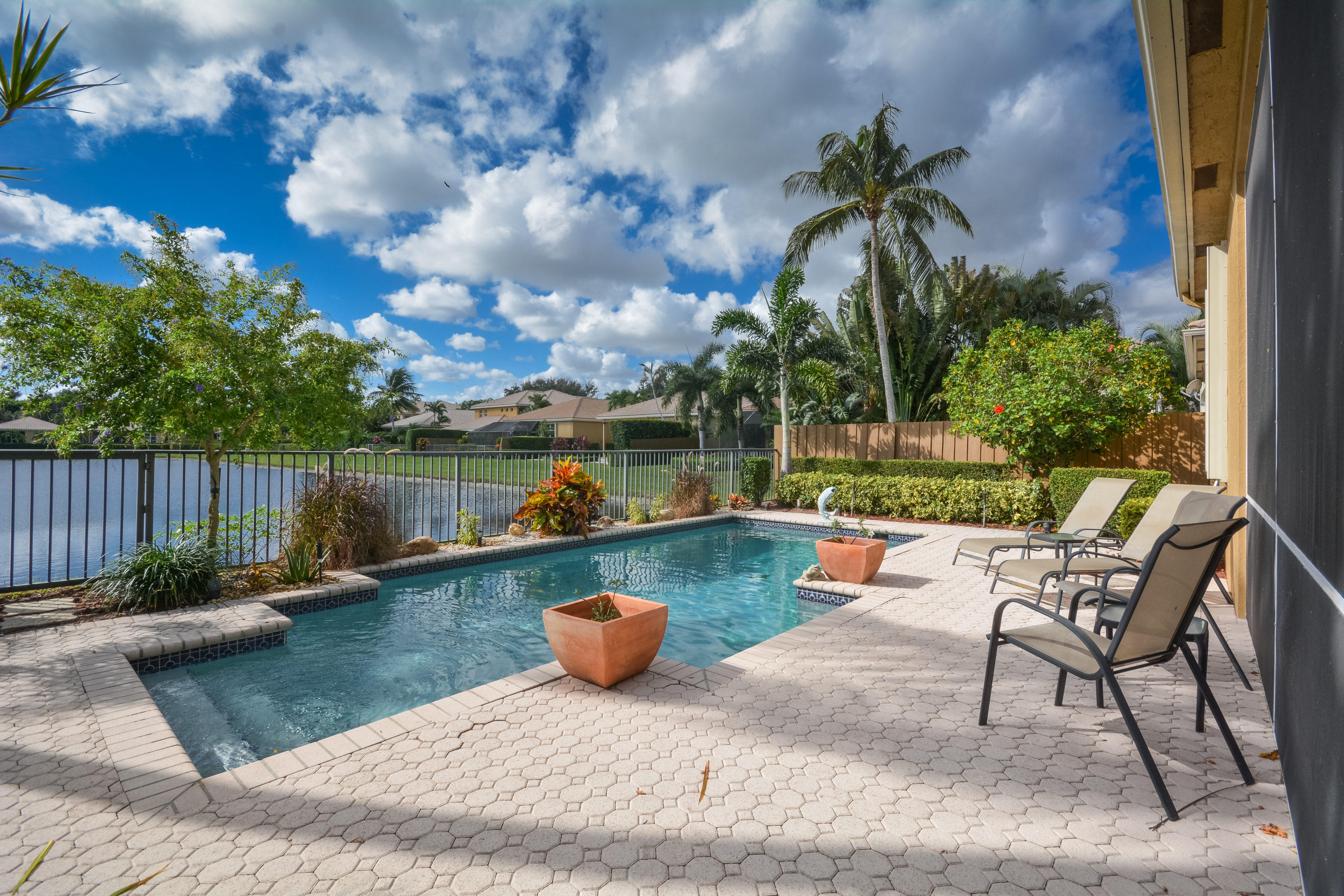 BEST VIEW! BEST LOT! BEST DEAL IN BANYANS!! ''Perfection'' in a home that you come to and move right in and hang your clothes.A location and setting that is second to none, boasting southern exposure overlooking your own pool with long lake views. It is not only in PRESTINE condition, but the 3 bedroom, 2 1/2 bath has been TOTALLY RENOVATED. The interior beginning with a new high end carrera marble kitchen, crown molding throughout, new flooring in the living areas, carpeting in the bedrooms, LED lighting inside and out, closets recently finished by closet factory and a front door installed with glass to let the outside light brighten the entrance way. The exterior has new shrubs, and very recently a new garage floor which is also appointed with built-in wall cabinets for extra storage