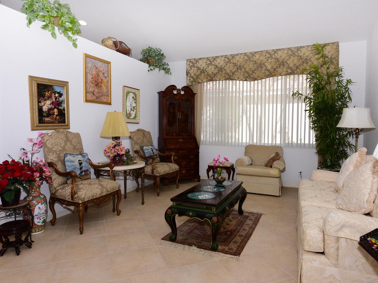 24 hr manned gated community; Active 55+ community; great club house with many activities, pool and tennis. Short drive to all Wellington Equestrian venues, Okeeheelee Park, golf courses, airport, beach and downtown City Place with free out door concerts and bike rentals. Very spacious (2,184 living sf) split bedroom plan; 3rd bedroom has double doors; new Frigidaire stainless steel appliances (1/18); eatin kitchen has 42" maple cabinets. New carpets in bedrooms. Floors have diagonal tile. Master bedroom has vaulted ceilings and walkin closet. Screened patio. Inside laundry with cabinets and sink.