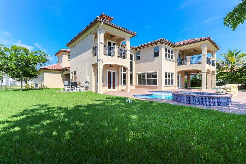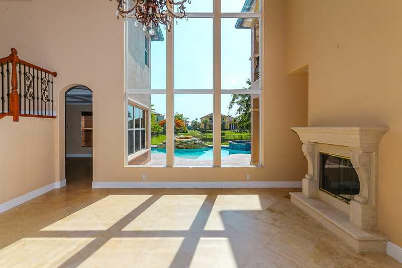 Ready for move-in. 5BR+library+ loft*Great Water views Lot*Gourmet Custom Kitchen wooden cabinets*Granite counters tops*Upgraded Appliance .*Center Island w/drawer Microwave*Summer Kitchen*Master w/extra Room*Covered Balcony*Marble BA w/Wood Cabinets*Whir lpool Tub & Bidet*Marble floors thru out*Fireplace*crown Molding*Impact Glass*Spacious Patio*oversized Fenced Yard & Large Pool w/Heated Spa & Natural Stone waterfall*Paver Driveway, 4-Car Split Garage w/Big storage area*Heron Estates. Master is upstairs.