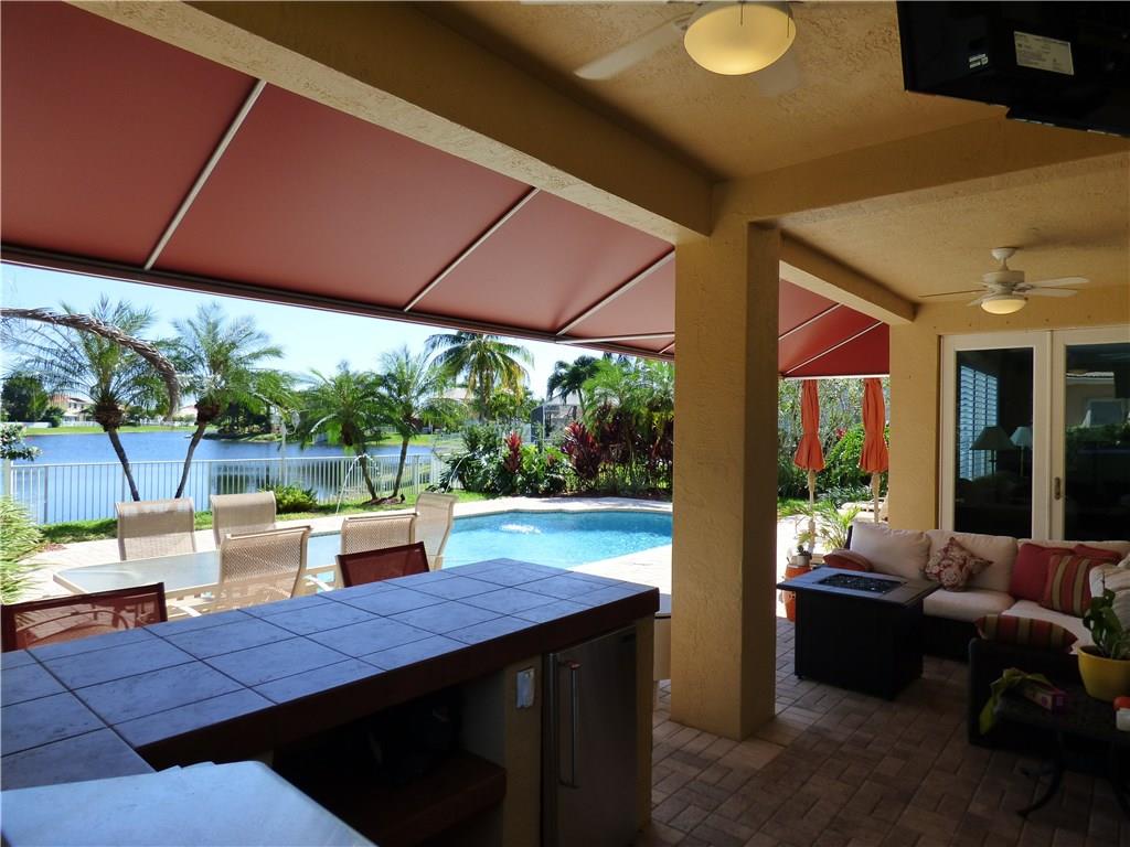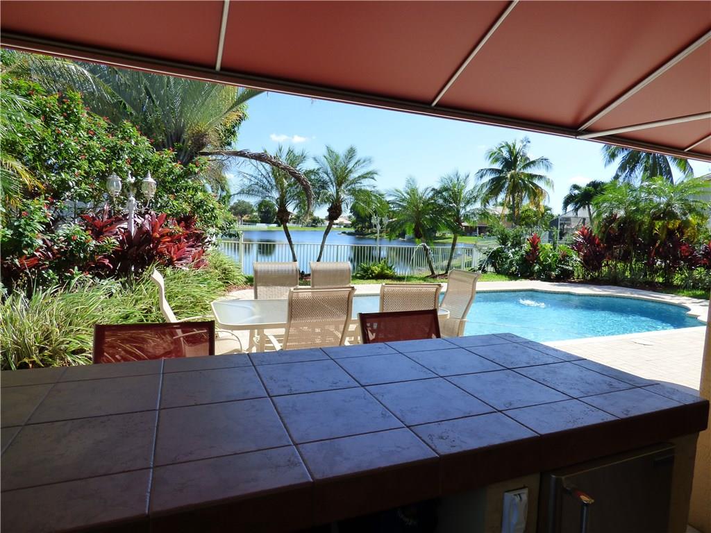 IMMACULATE & NICELY UPGRADED 4BED, 3BATH & 2CAR GARAGE WATERFRONT/POOL HOME. 42' KITCHEN CABINETS WITH GRANITE COUNTER TOPS & NEWER APPLIANCES. PORCELAIN & WOOD FLOORS, PLANTATION & ACCORDION SHUTTERS, REMODELED BATHROOMS, CROWN MOLDING, FRENCH DOORS, IRON STAIRCASE & CUSTOM ENTRY DOOR. 1BED/1BATH ON 1ST FLOOR. EXTENDED COVERED TERRACE W/ SUMMER KITCHEN AND CUSTOM AWNINGS. REMODELED POOL W/7 YRS WARRANTY. TILED GARAGE WITH CABINETS. FENCED LOT & EXTENSIVE LANDSCAPING. WAS THE MODEL HOME, A FANTASTIC HOME!