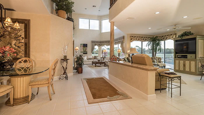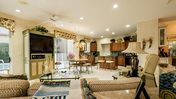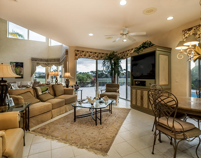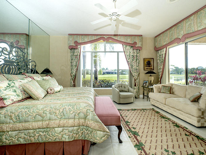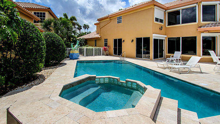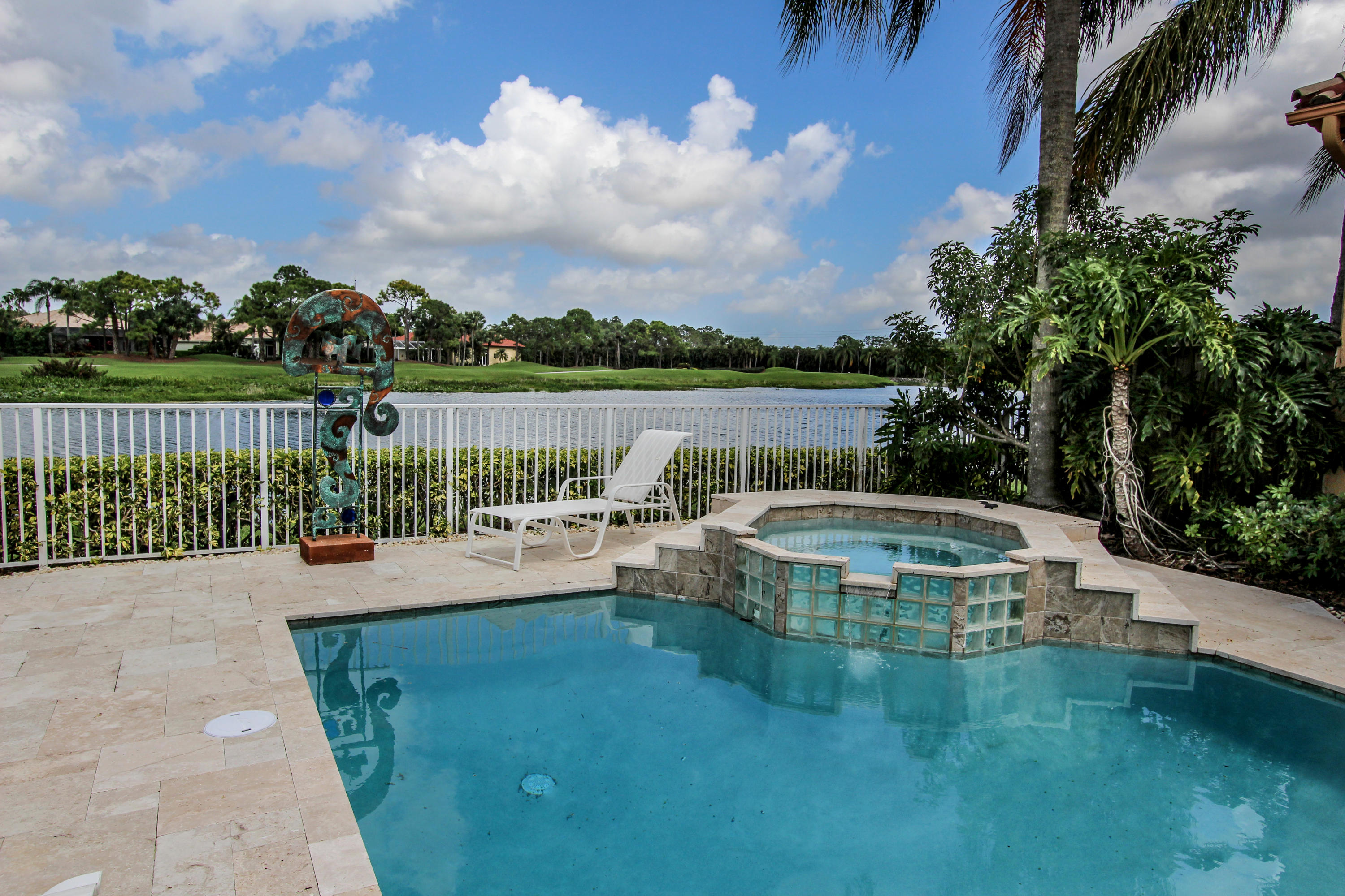 Would you like a 3BR/4BA/Den home with a panoramic water and golf view? Well, here it is! Offered TURNKEY , including golf cart with the purchase of a golf membership. Set on a large pie shaped lot, this home offers a new kitchen with stainless appliances, new pool equipment and heater, Diamond Brite finish and stone marble floors-over $25,000 in pool upgrades, elegant and light throughout. Upstairs has 2 BR/2BA+ a large loft overlooking water and golf. Epoxy floor in garage,Hurricane pull down shutters. Lots of other upgrades throughout-must be seen to realize what a wonderful home this is. With a few exceptions, this home is ready to be lived in from the first day of ownership. Situated on a quiet cul de sac it is a rare find at this price.