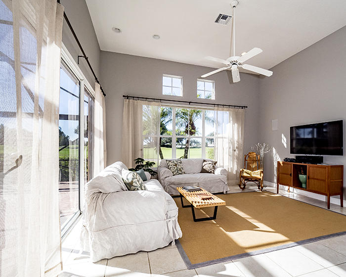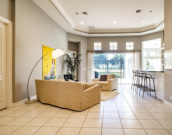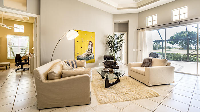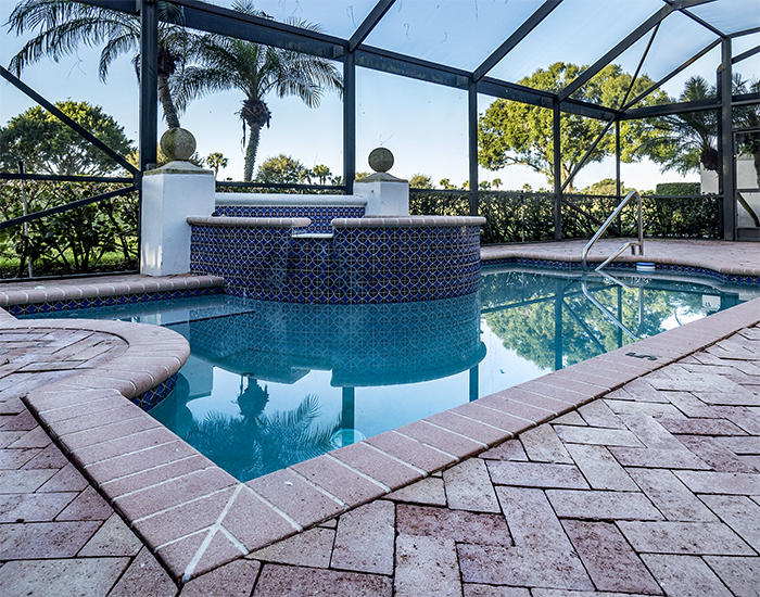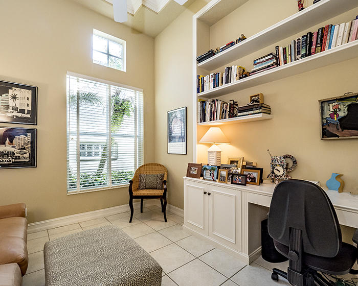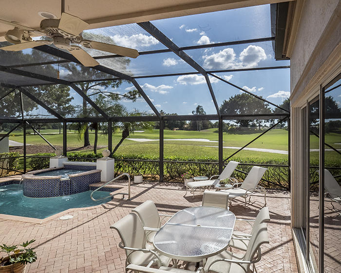 This charming and bright 3BR/3BA+ Den home features an oversized screened patio with a heated pool and spa located on the Legend Golf Course.Customized wet bar adds to the charm of this home. New paint and wallpaper in neutral tones of grey, blue and beige with new light fixtures, new fridge, glass tiles in kitchen,crown moldings, new pool equipment add to the value of this home with a desirable southern exposure in the back.Perfectly located in Ibis with easy access to front gate.Built in desk area in den is a real plus plus there is still room for a sleep sofa. Very open floor plan and move in perfect!