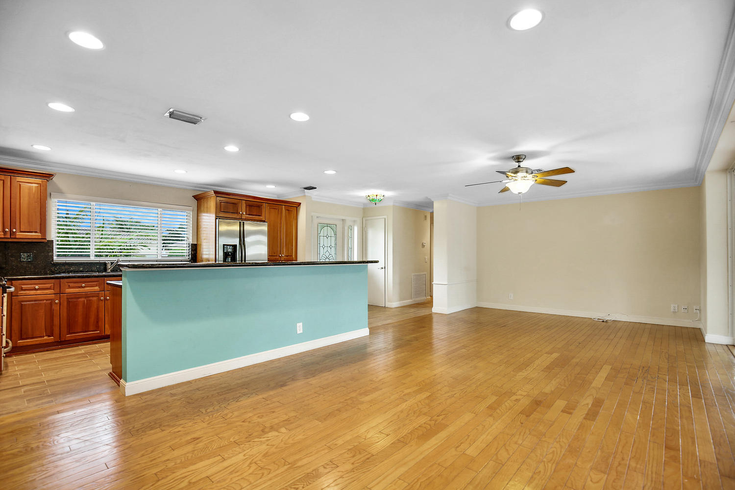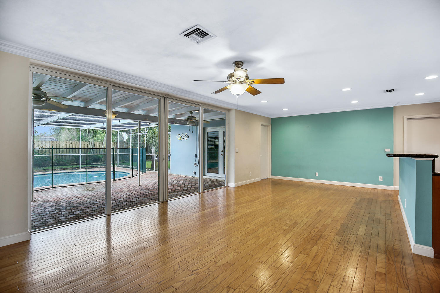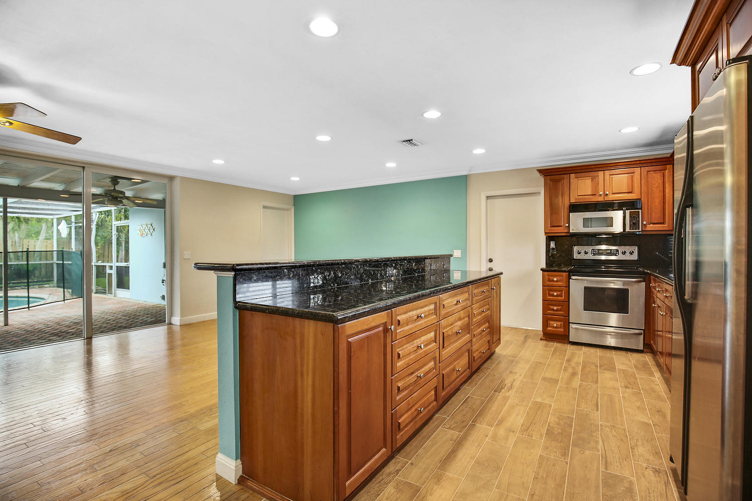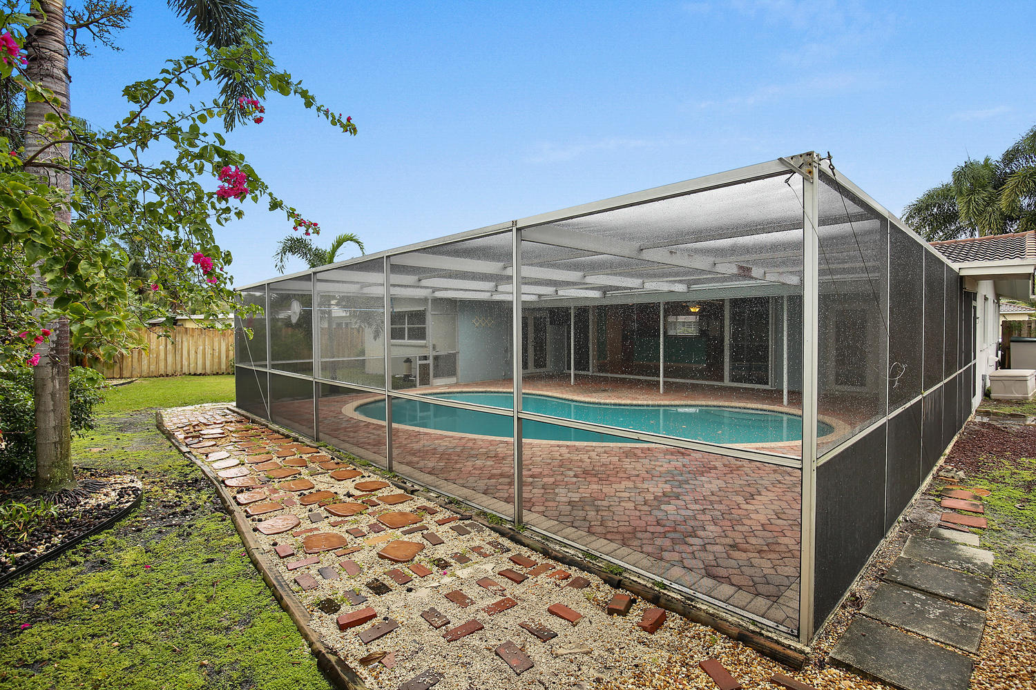 Great opportunity, exceptional value! East Boca Raton charmer in highly desirable Addison Mizner school district. Close to I-95, beaches & downtown! Single story 3 bed, 2 bath pool home on very quiet, low traffic street. Open floor plan features updated granite Island kitchen with breakfast bar open to the family room and out to patio, pool and yard. Huge open sliding door from family room to patio with triple' span! Ceramic and wood flooring. Private master suite, split plan. Quality CBS construction with tile roof and full set of hurricane shutters. Pool is fully screened and includes child fence between house and pool.
