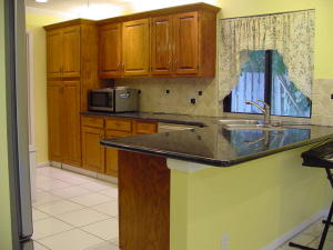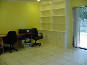 This lovely one-story home of 3 bedrooms, 2 baths & a 2-car garage in east Boca Raton with a large private fenced grassy backyard offers white tile floors in the living areas & laminate florring in the bedrooms; a nicely updated kitchen with maple cabinetry, granite countertops, tumblestone backsplash & stainless steel appliances; built-in book shelving in the Family Room; large walk-in closet in the Master Bedroom; Dining Room mirrored wall; crown moldings & extra high-hat lighting; newer washing machine; attic with pull-down ladder; large screened-in patio with Mexican tile flooring, newer air conditioning (about 2 years) & accordion hurricane shutters.