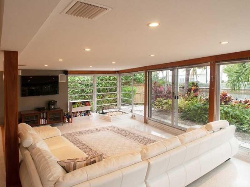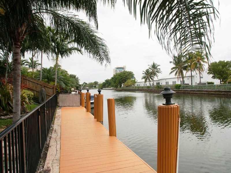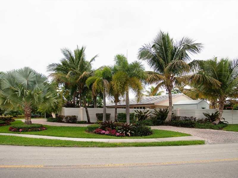 Harbor Beach waterfront corner home with 50' dock & lushly landscaped grounds. 1 fixed bridge to ocean. Main house has 3 bedrooms & 2 full baths. Open floor plan. Wide Florida room with floor to ceiling sliders for views of water & luminous light. Watc h boats cruising from your own backyard. Detached garage converted into legal guest suite. Very private property with a beautiful entry courtyard & fountain. Room for a pool. Lots of parking. Membership at Lago Mar Resort optional. Walk to the beach!