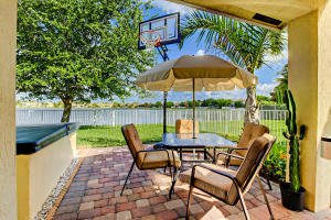 Welcome home to your meticulously maintained 3 bedroom 2.5 bath lakefront home in Liberty Isles! Pride of ownership shows the minute you walk into this home. Upgrades include 18'' tile flooring, stainless steel appliances, tray ceiling, extended paver patio with spa overlooking the sparkling fountain & serene lake. Enjoy a spacious master suite with walk in closet, double vanity, and separate soaking tub and shower. With upgraded appliances, upgraded AC Unit and 2003 construction, all that is left to do in this home is enjoy! Can you see yourself in the spa, steps from the lake at sunset? Community amenities include clubhouse, grand pool, splash park, fitness center, tennis courts and basketball all included in your HOA as well as lawn care. Quiet resort style living close to everything!