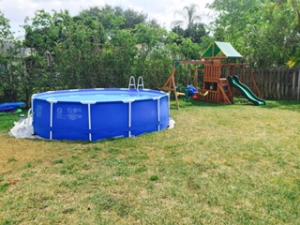 Updated flooring,screened patio, cathedral ceilings,glass sliders, breakfast nook,hurricane shutters, spacious fenced-in backyard,water sprinklers,up-the-ground swimming pool, swingset,and more.Close to shopping centers,parks,and the Florida Turnpike.All offers must include pre-approval letter and proof of funds. All agents and buyers must confirm HOA application fee and HOA guidelines and protocols.The HOA payment includes for the community pool,basic cable,and HBO.All agents and buyers must confirm all measurements etc. Easy to show, 24-Hour notice,All agents must accompany their clients while on property.