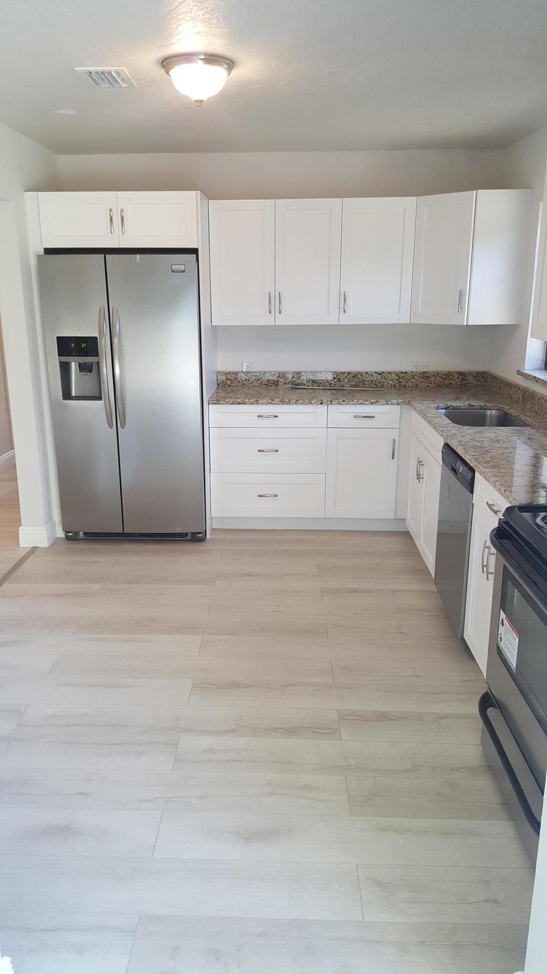 Beautiful 3 Bed, 2 Bath Single Family Home, totally renovated. You must see it ! New bathroom, kitchen, granite counter tops, all new appliances, crown moldings, baseboards and laminate wood flooring. Big fenced backyard. Freshly painted inside and out. This beautiful home is located near Downtown W.P.B, the new Palm Beach Outlet Mall and Beaches.