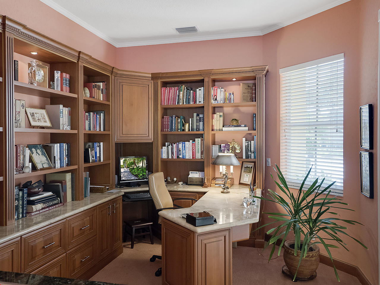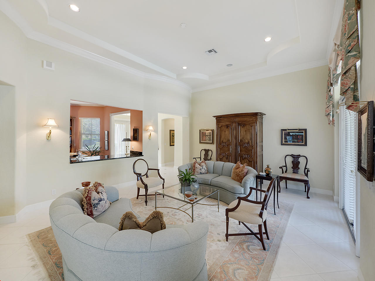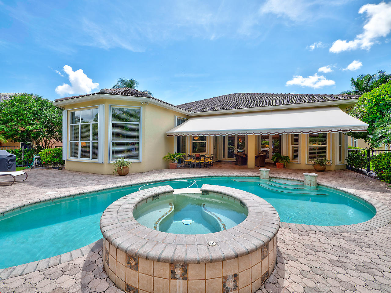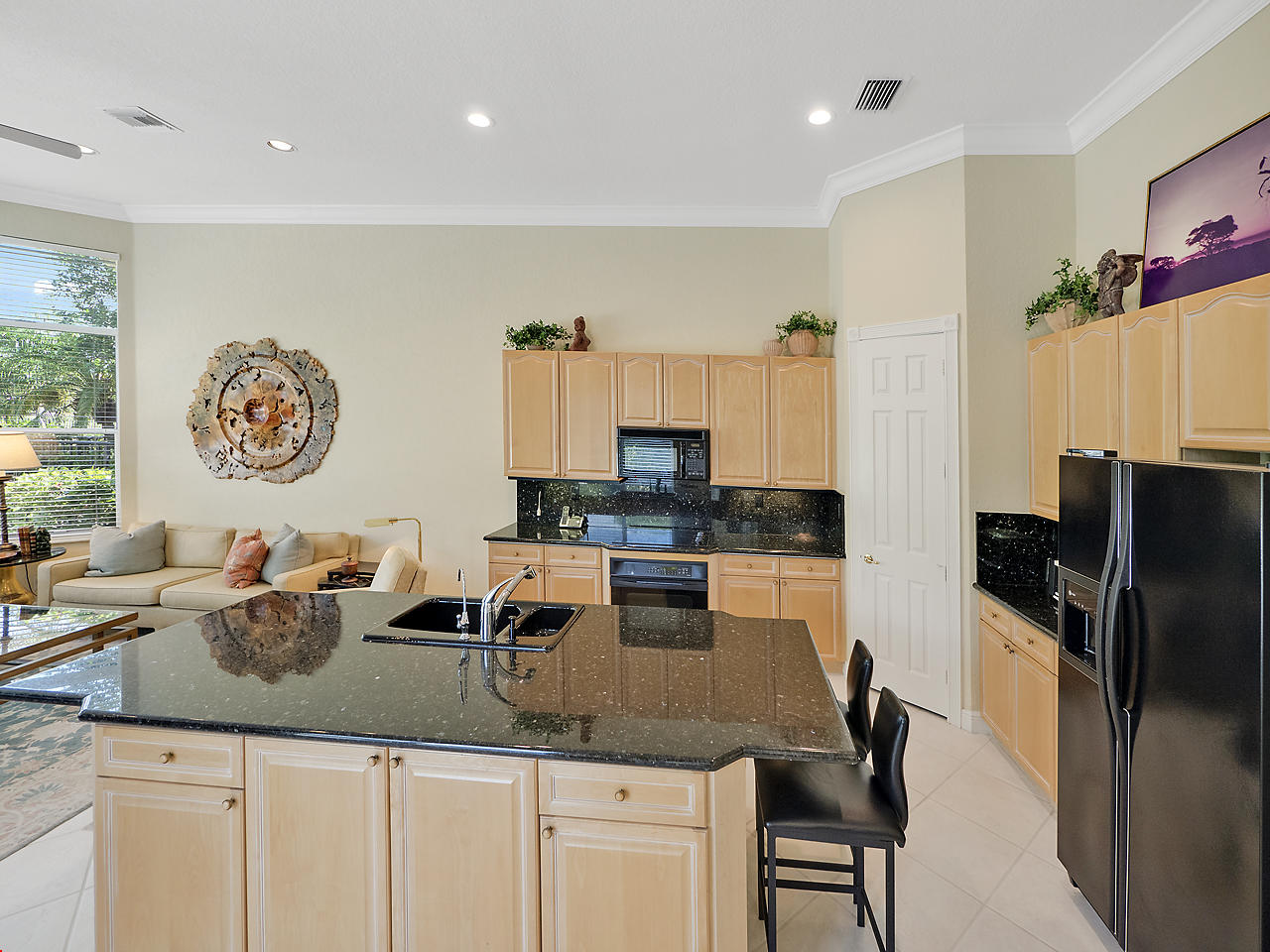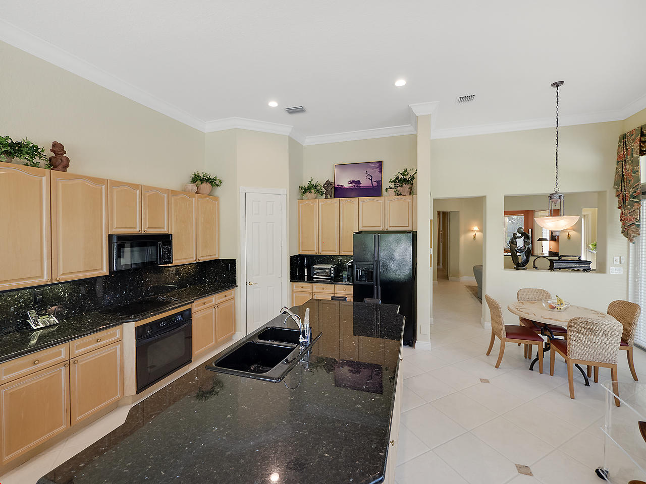 Newly listed, 3/3/2.5 plus golf cart parking. On golf course. Office/Den, updated. Heated pool, fenced in back yard.FRONT ENTRY WAYDouble glass doors enters the foyer, tiled diagonally thru out this lovely home. 2" tile in the front entrance. VOLT cielings. The office is to the right hand side. Customed built cabinets, granit tops enhances this office cabinets. One side is a large cutout to the living room, wet bar and wine bar.KITCHEN/ FAMILY ROOM12' x 14.8" Kitchen, Crown molding, GE appliances, granit counter tops that extends to the back splash, plenty of storage space, extra hi hats to lighting, large center island, pantry, eat-in breakfast nook, 12 ' x 1" ceiling, glass french doors exits out to the patio. 17' 2" x 15' Family room, 4 large picture windows.