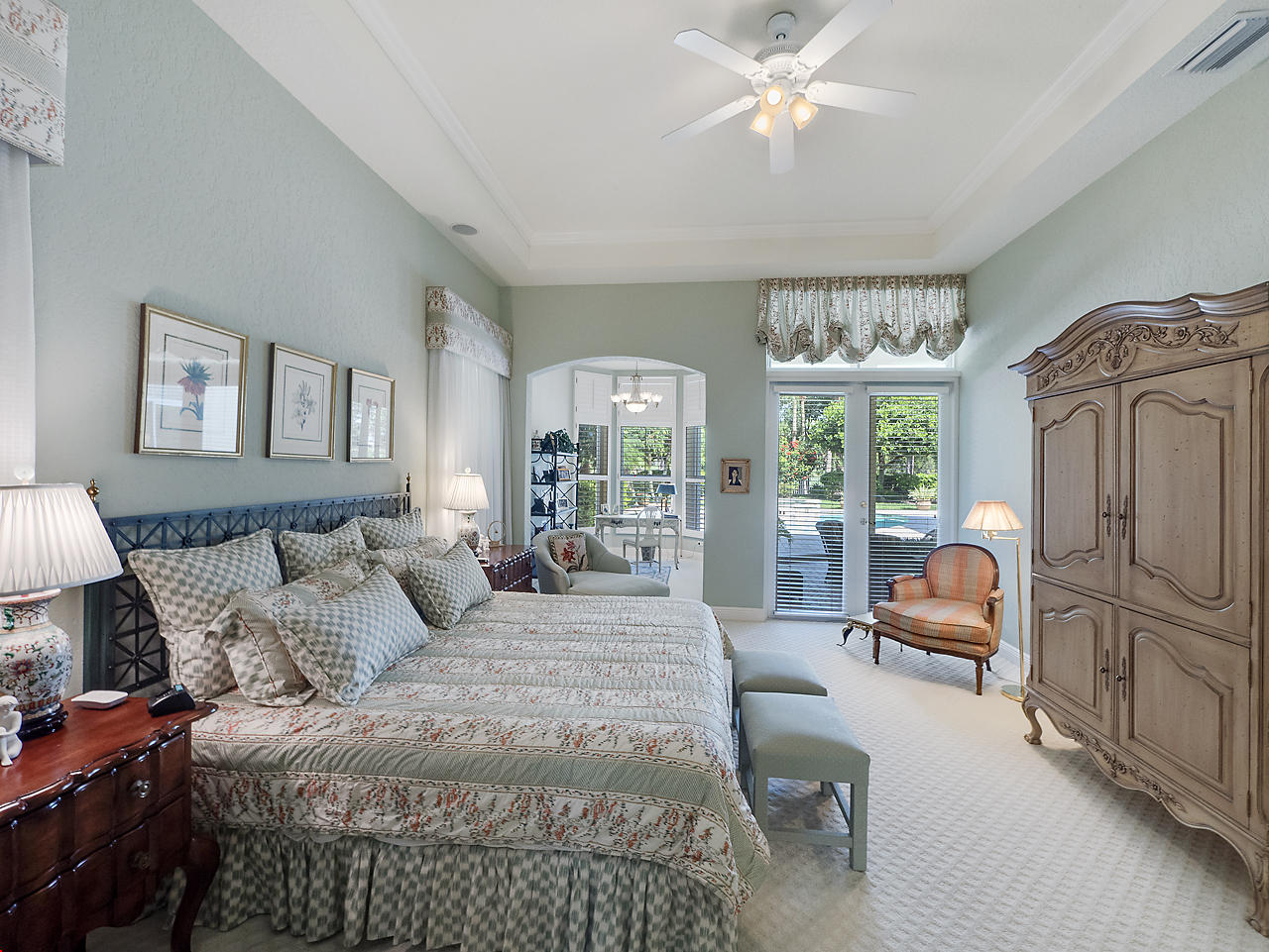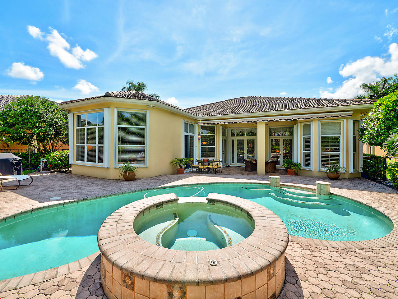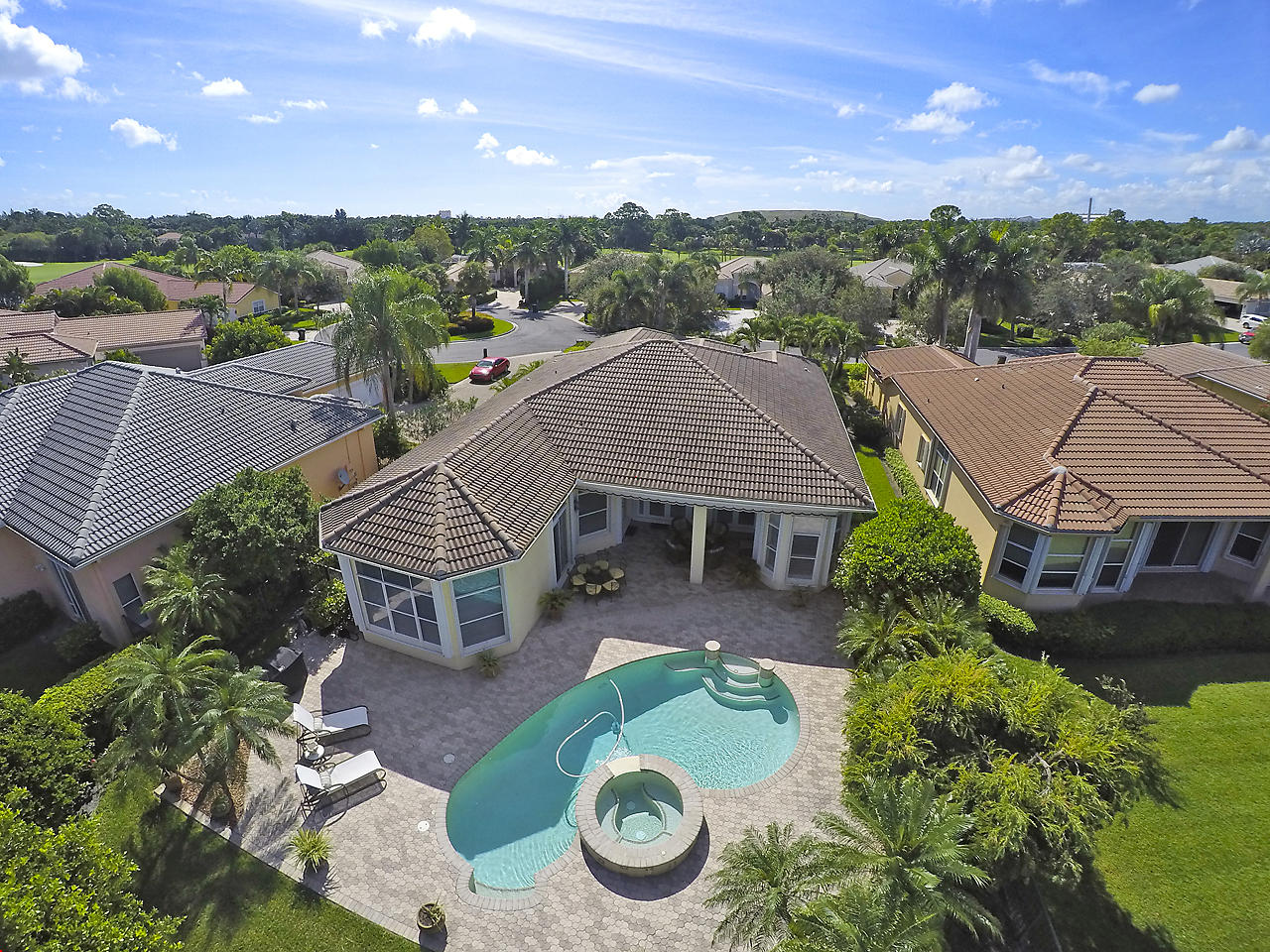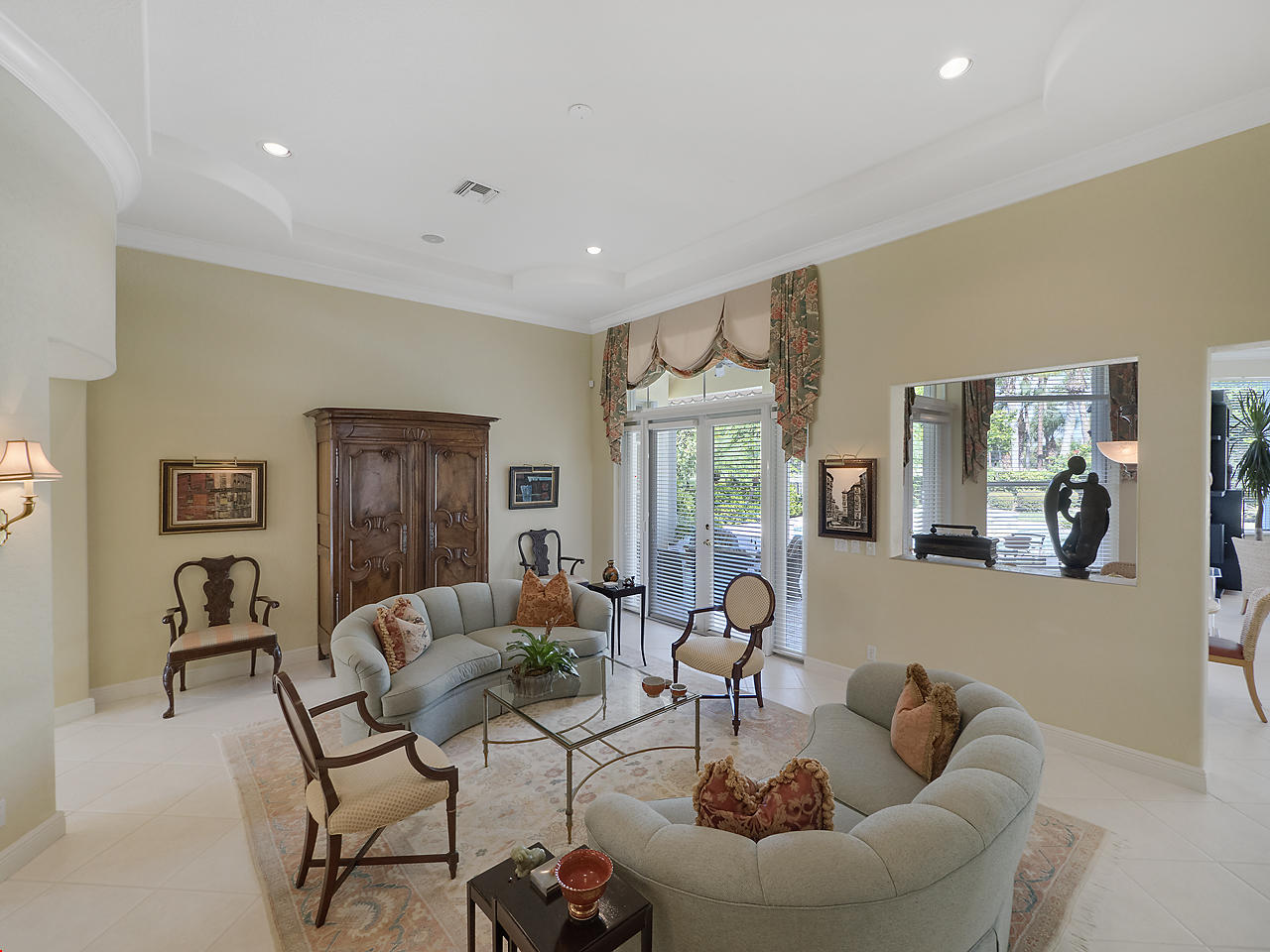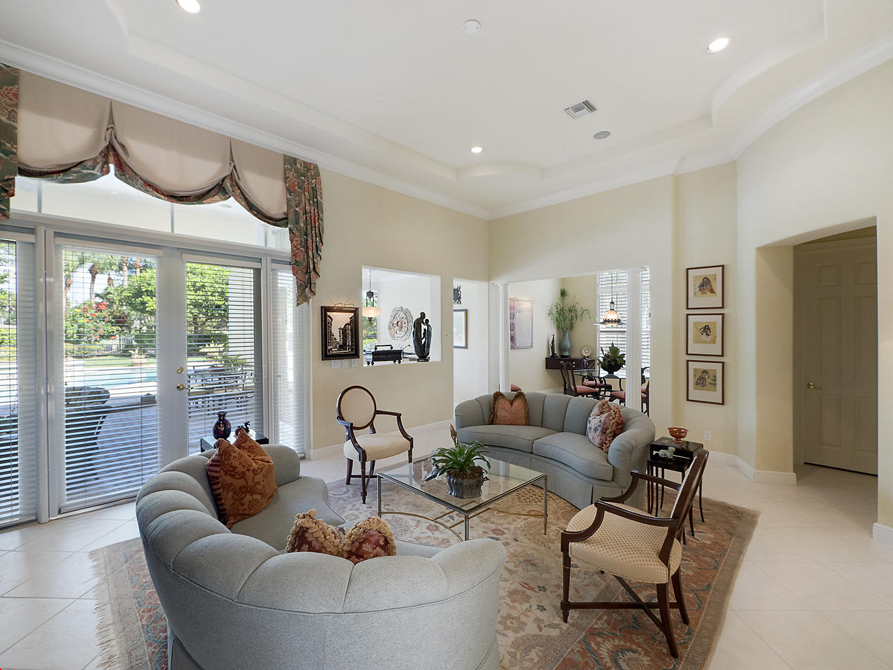 Newly listed, 3/3/2.5 plus golf cart parking. On golf course. Office/Den, updated. Heated pool, fenced in back yard.FRONT ENTRY WAYDouble glass doors enters the foyer, tiled diagonally thru out this lovely home. 2" tile in the front entrance. VOLT cielings. The office is to the right hand side. Customed built cabinets, granit tops enhances this office cabinets. One side is a large cutout to the living room, wet bar and wine bar.KITCHEN/ FAMILY ROOM12' x 14.8" Kitchen, Crown molding, GE appliances, granit counter tops that extends to the back splash, plenty of storage space, extra hi hats to lighting, large center island, pantry, eat-in breakfast nook, 12 ' x 1" ceiling, glass french doors exits out to the patio. 17' 2" x 15' Family room, 4 large picture windows.