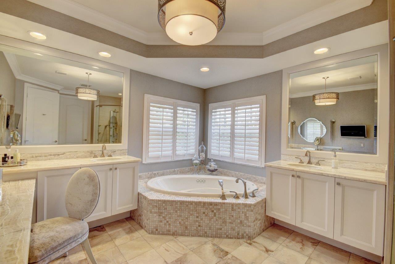 This Gorgeous custom designed and completely renovated AVENTINO model offers all the upgrades imaginable plus a PRIME location on the center courtyard!! This desirable corner unit features south exposure which allows for light filled rooms, and a very open & airy feeling. High end finishes throughout w/ wood floors in most rooms, California shutters, closets with built ins, and crown molding. The open Dining and Living Room offer a custom built-in bar with GE PROFILE wine refrigerator. A stunning modern Kitchen features a new island with granite countertops with waterfall edge, and all stainless steel appliances including a gas cooktop and double oven and newer refrigerator freezer. The three stop elevator features custom wood paneling and granite floor. The ultra luxurious Master