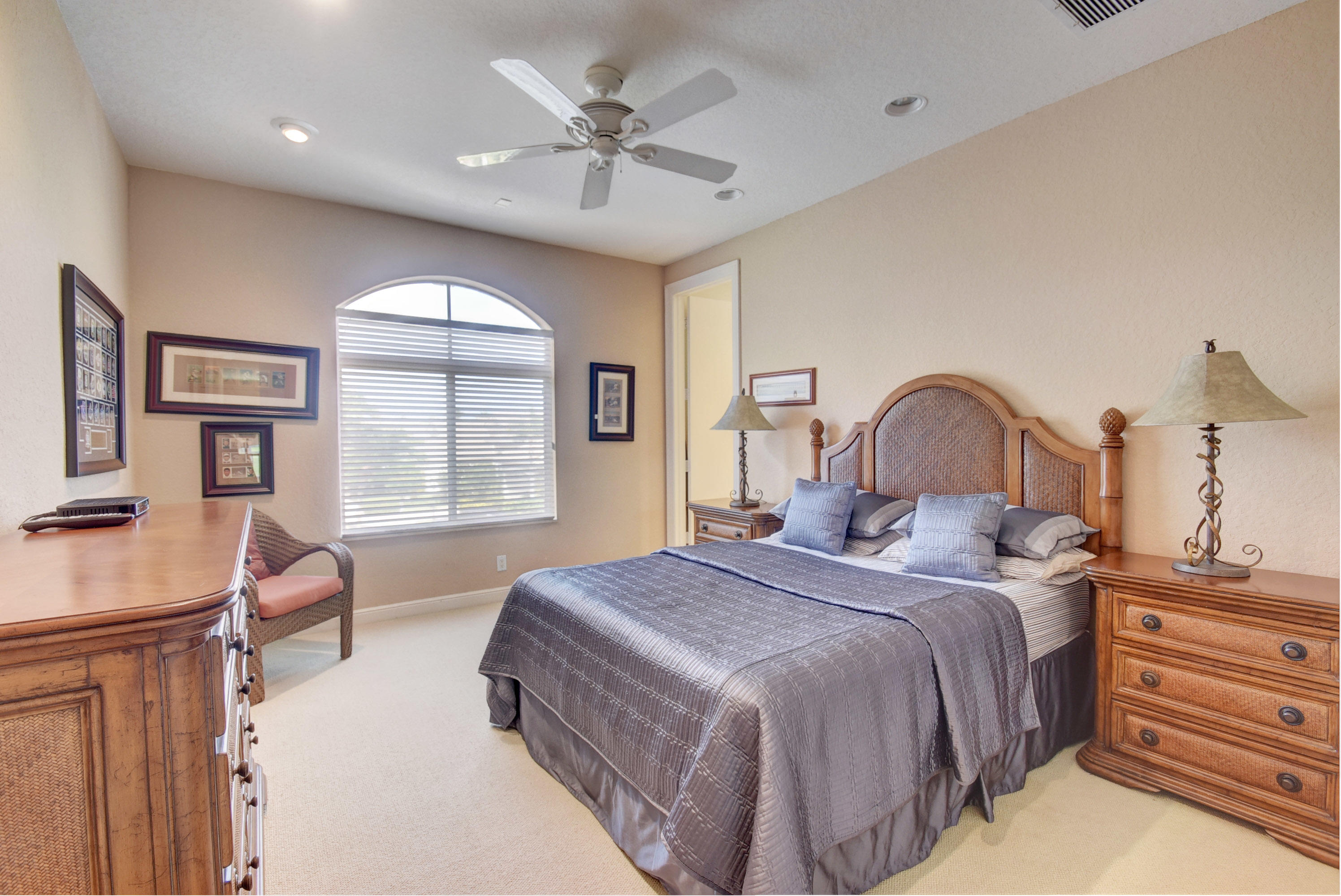Tranquil golf and water views await you in this 5 bedroom, 6 bathroom estate home located in the desirable Bay Creek section of Woodfield Country Club. The master suite boasts his and hers walk-in closets and bathrooms along with a private office and additional bedroom and bath. The kitchen, which features granite and silestone countertops and stainless-steel appliances, opens to the family room and breakfast nook area, overlooking the expansive rear garden patio. The garden patio has long lake vistas and views of the 6th green and 7th tee box. The second floor has 2 ensuite bedrooms and loft area. Park your luxury automobiles or private golf cart in the attached 3-car garage that also has an air-conditioned storage room for your luggage or holiday decorations.