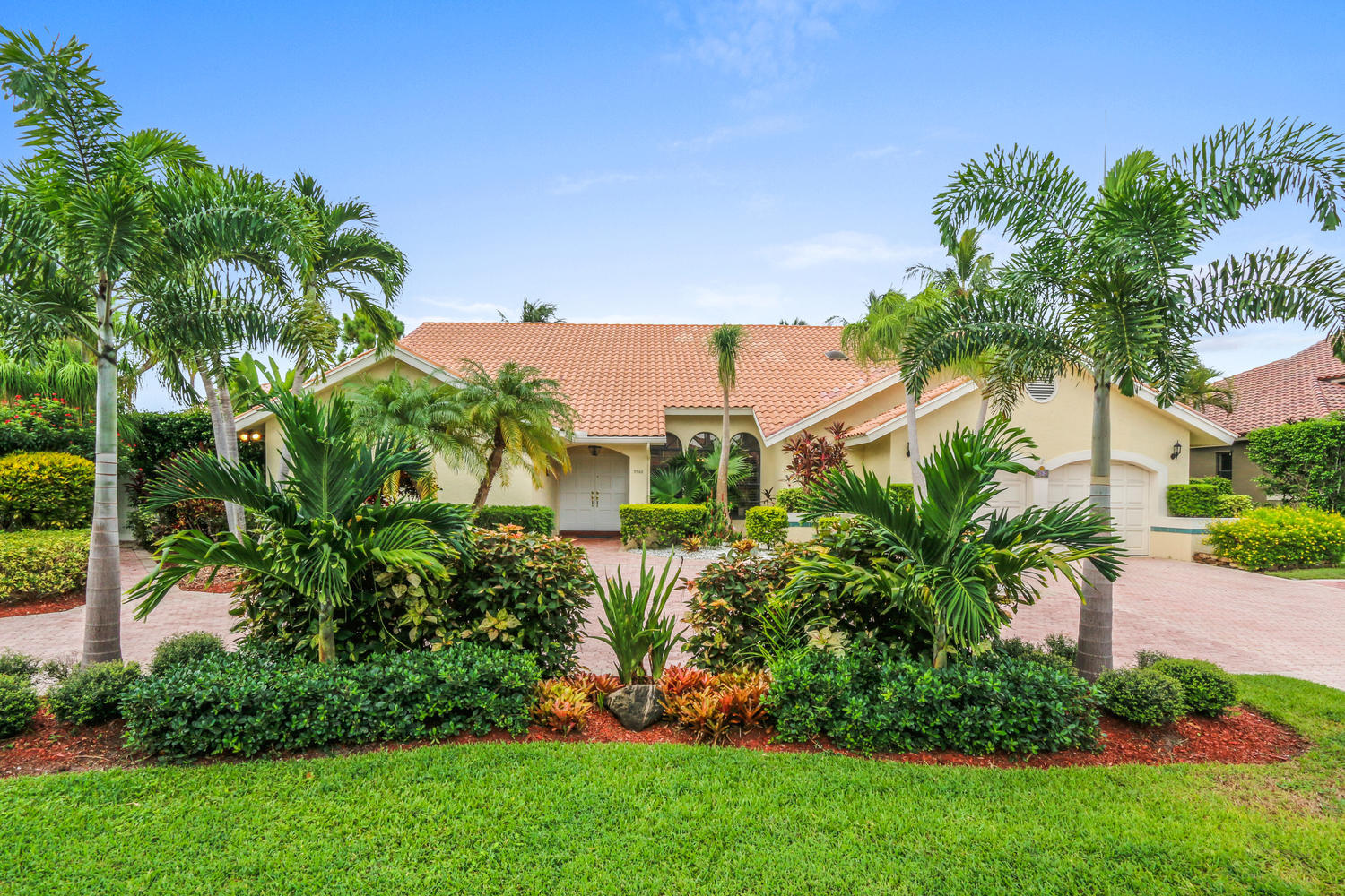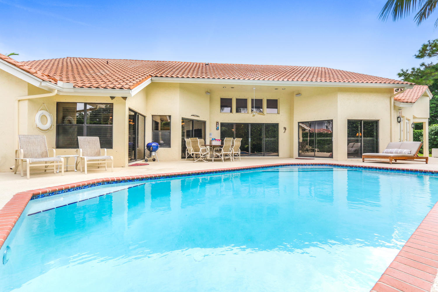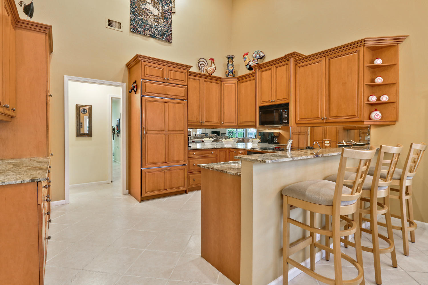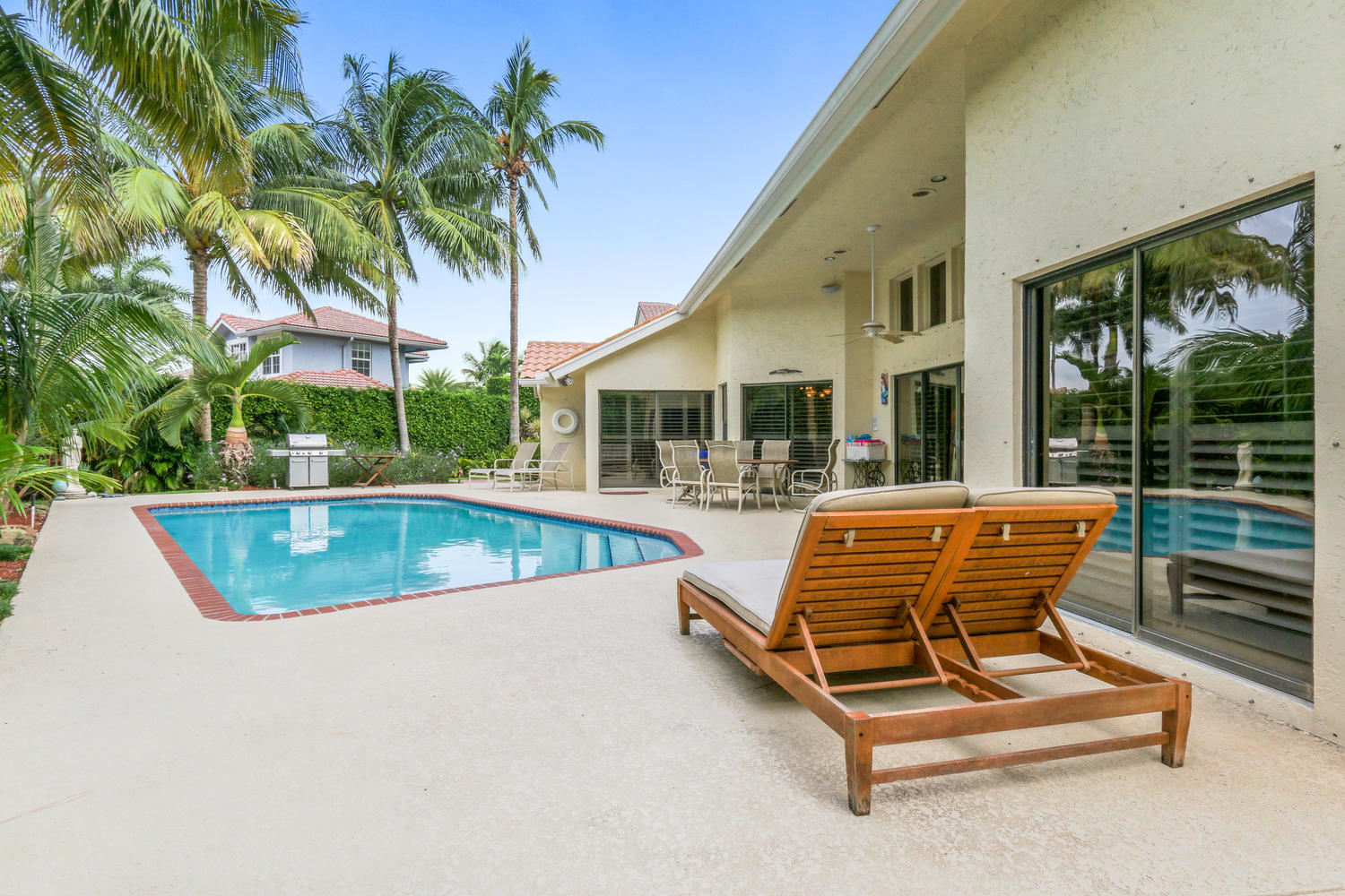 Beautifully upgraded home on oversized corner lot - .33 acre with incredible privacy and spectacular backyard! Extraordinary 5th 'bedroom'/bonus room off the master. Renovated kitchen has wood cabinets with crown molding, pull out shelves, granite counters, Subzero refrigerator with matching cabinetry front panels, breakfast area and bar seating. You might want this house just for the patio and pool area! Coveted southeastern exposure and outdoor cabana bath, gorgeous tropical landscaping surrounds you in your private Florida paradise. Second patio and peaceful garden area off bonus room, which everyone in the family will be fighting over! It could be an office and has private exterior access. Huge circular drive of pavers, gated community with low HOA fees
